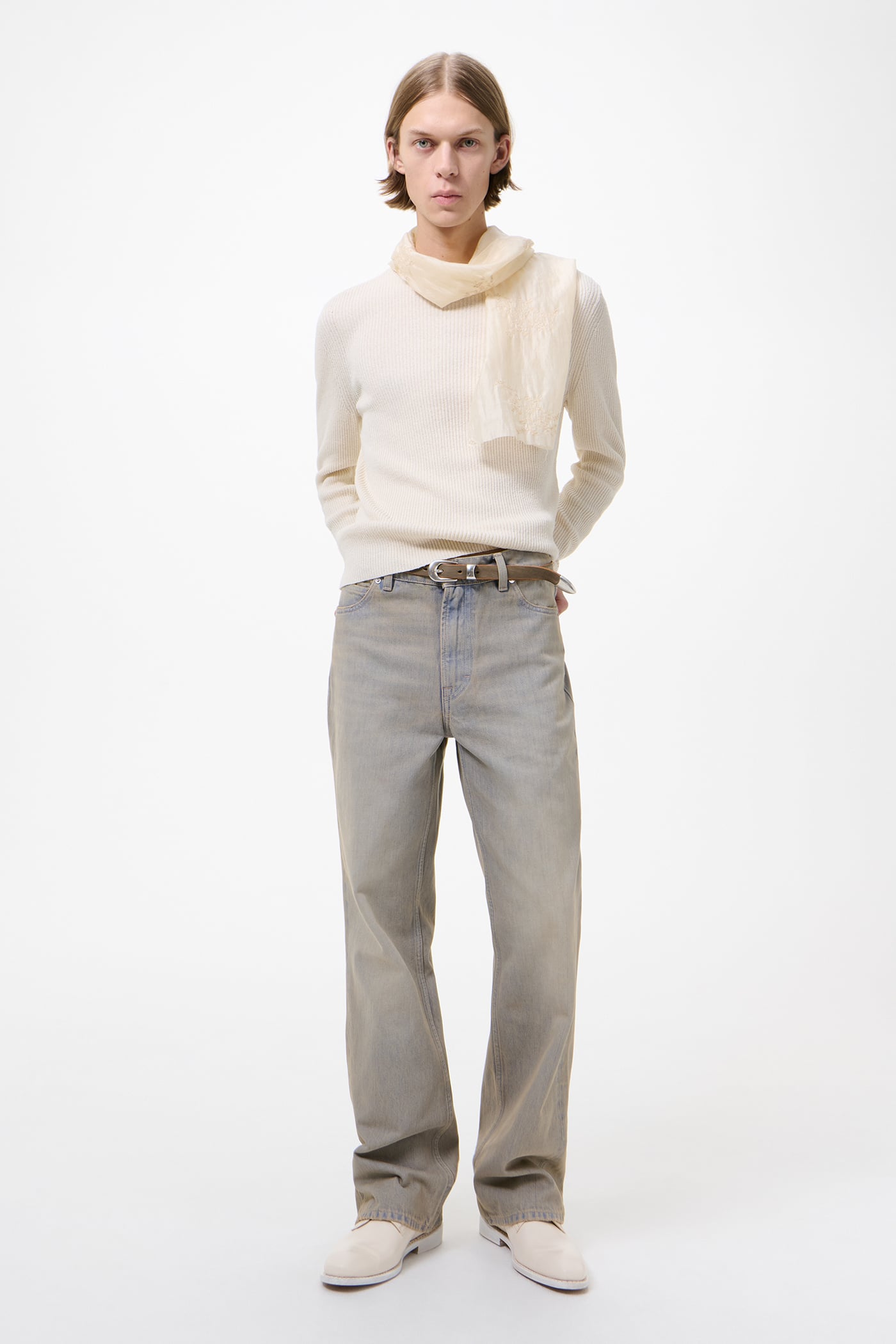 This garment is manufactured using carefully sourced material with a unique treatment process that will give each garment an individual shade and appearance. This technique could result in some color bleed onto lighter garments or surfaces. The garment shall be shaped by its wearer and naturally distress over time to finish the design process.
