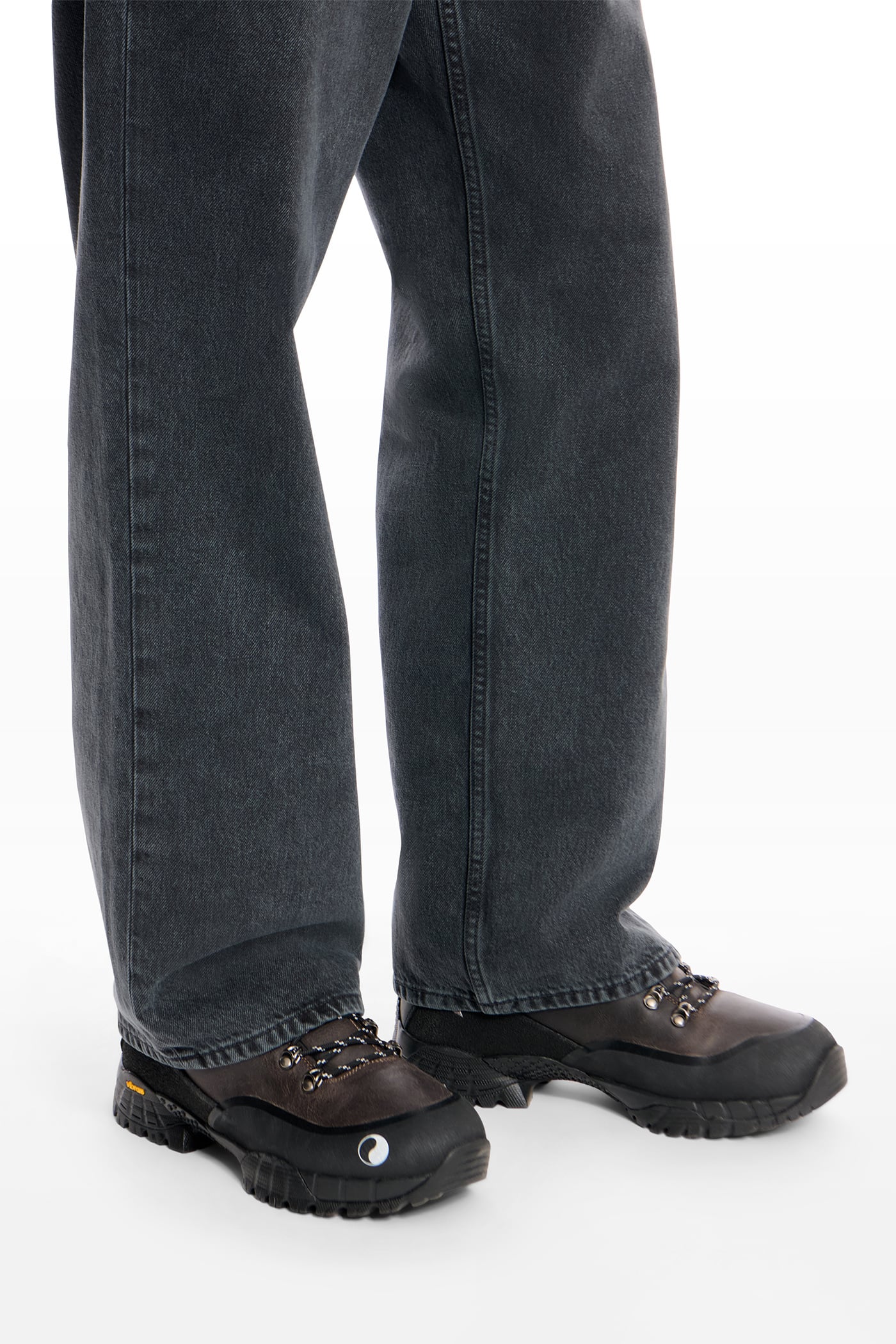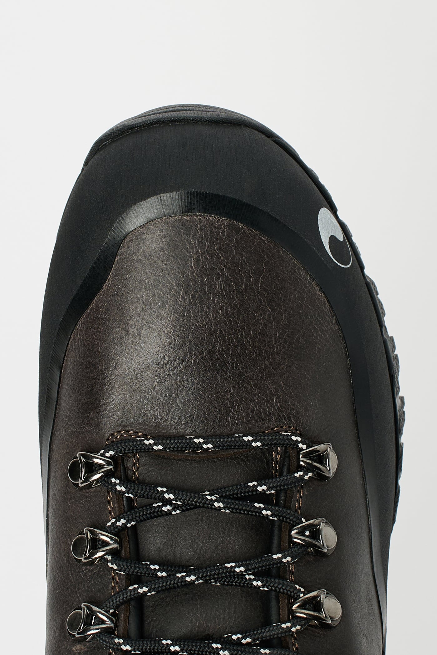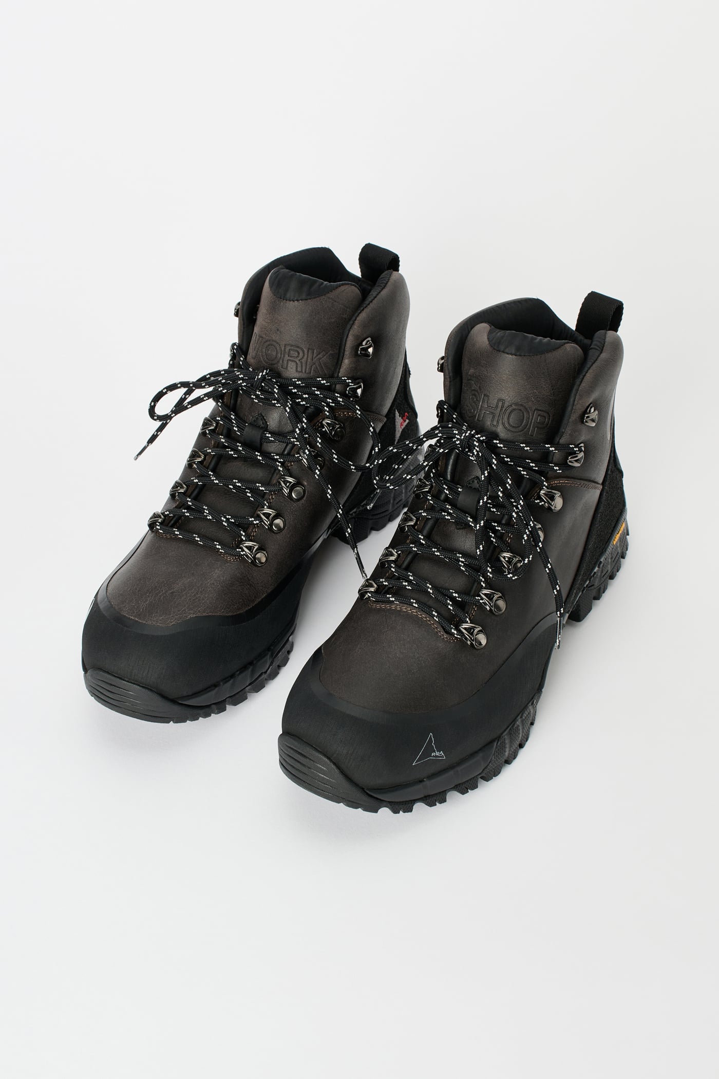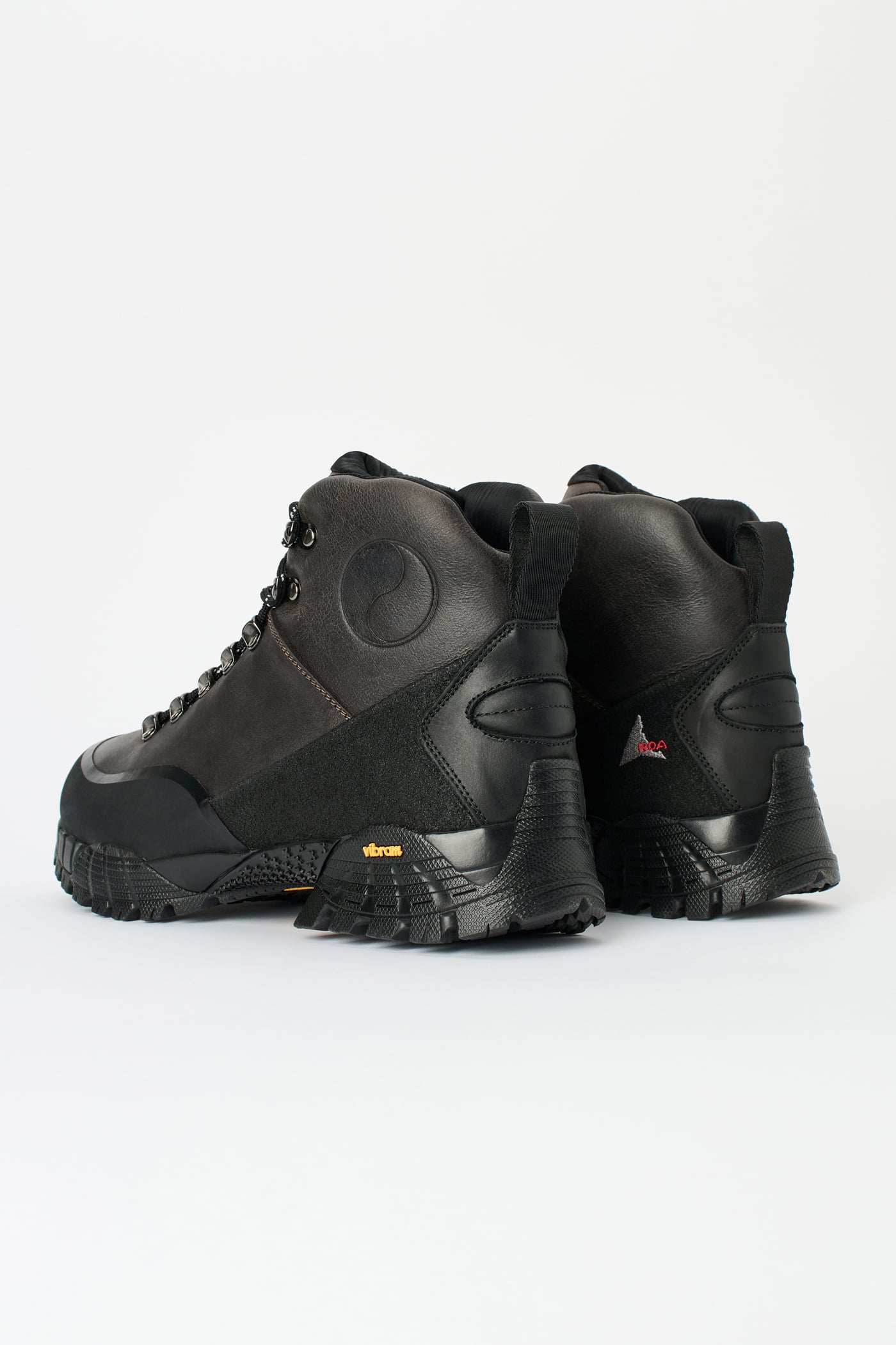 The ROA Our Legacy WORK SHOP Andreas boot is crafted from a rugged, full wax impregnated Kudu leather exterior for protection and durability with the comfort of an athletic shoe’s interior. Over time, the Kudu leather upper undergoes a unique visual evolution, preserving its timeless charm and developing a beautiful patina. The boots feature collaborative branding, a custom Vibram® Megagrip sole for traction, and a rubberized toe cap for added security. Our Kudu leather is sourced from a British LWG tannery, ensuring minimal environmental impact throughout its production process.