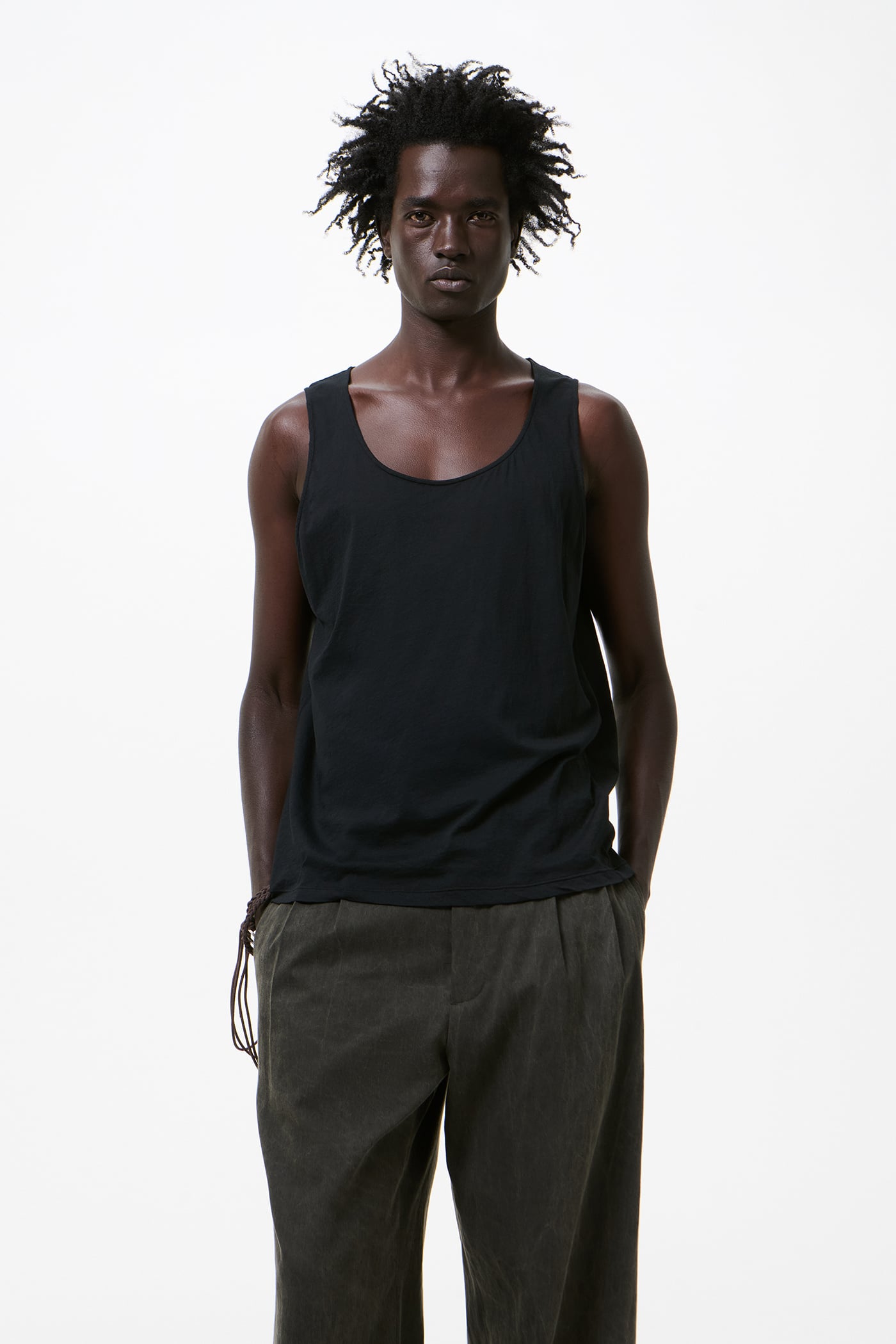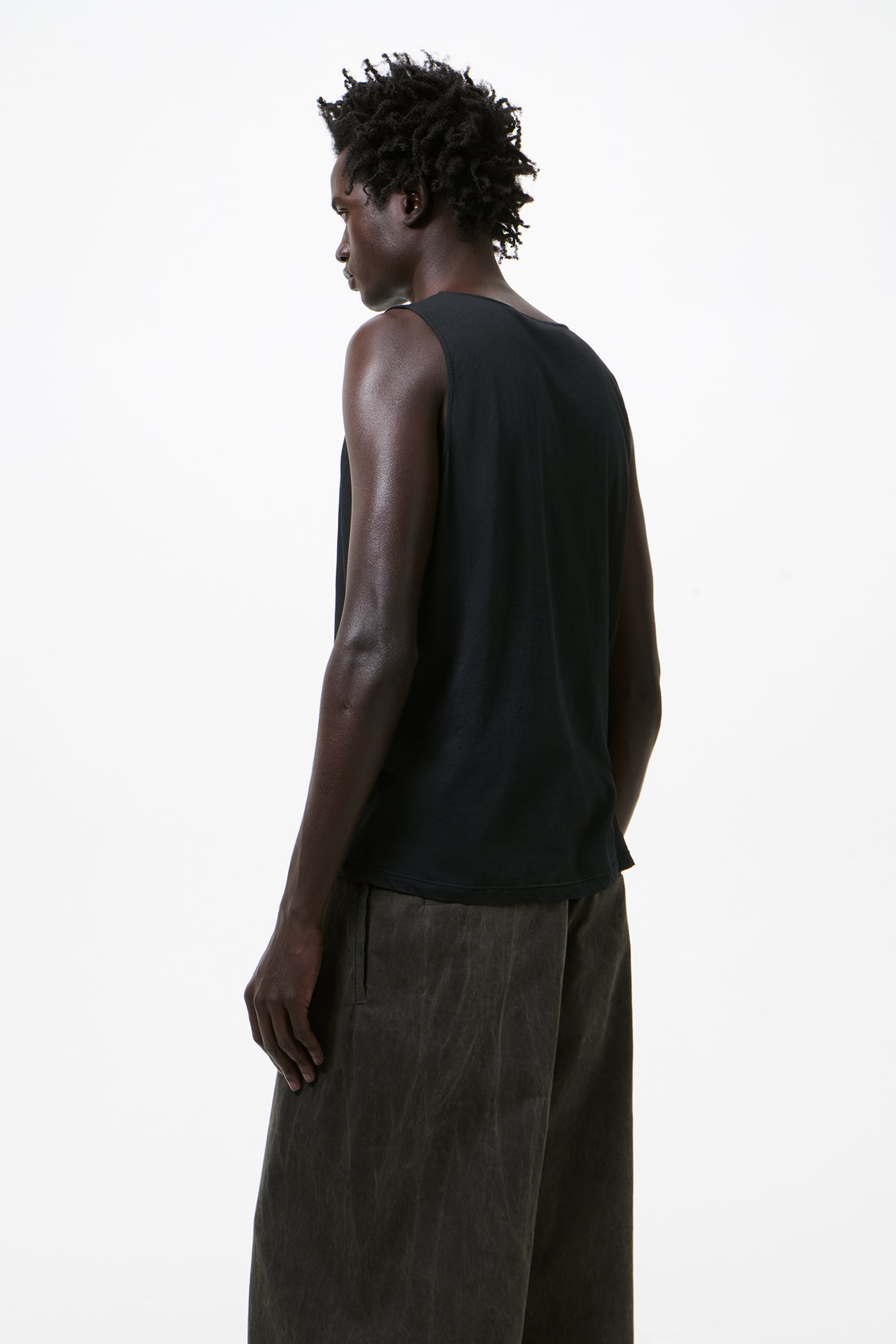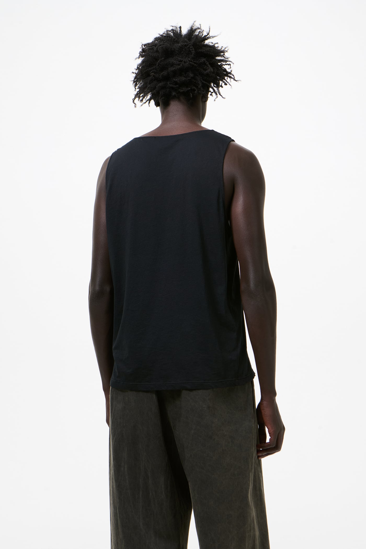 Our Athletic Tank in Raven Mist Airveil Cotton. Produced in Portuguese thin-veil cotton jersey, this lightweight tank features a deeply scooped neckline, a straight hem and a relaxed straight fit, offering breathable comfort with a delicate drape and a slightly sheer appearance. Pigment dyed for a rich, textured tone with subtle variations, the color will gently fade with wear and washing, giving each piece a unique character.