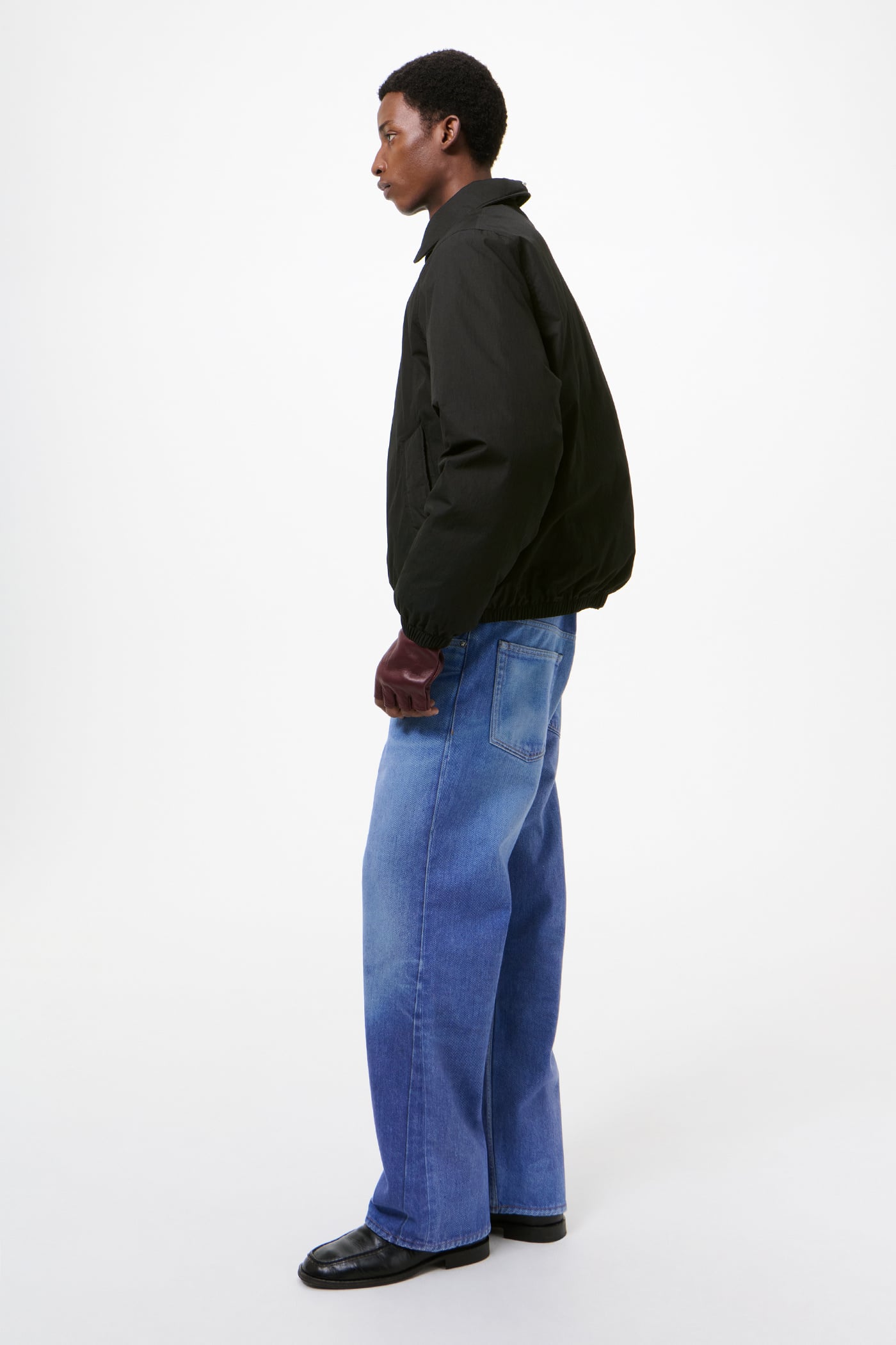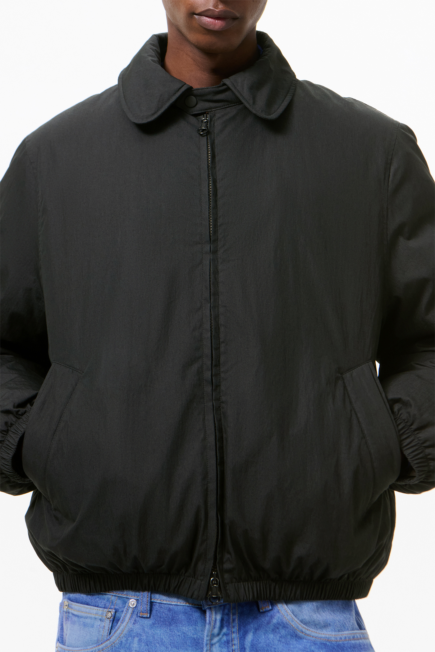 Our Avenue Puffa in Black Tide Cotton Nylon. Produced in a Japanese cotton and nylon fabric with duck down and recycled polyester filling, the Avenue Puffa has a boxy, wide fit and features a collar tab with snap fastening, a two-way zip, elasticated hem and cuffs, two welt pockets with hidden snap closure, full lining and an inside welt pocket with zip closure.