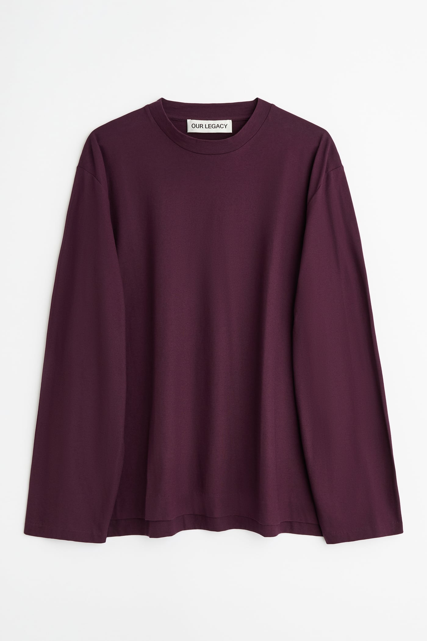 Our Box Longsleeve in Damson High Twist Jersey. Produced in a Japanese cotton fabric, the men's Box Longsleeve has an oversized boxy fit and features a fine ribbed collar, vented side seams and a dropped tail.