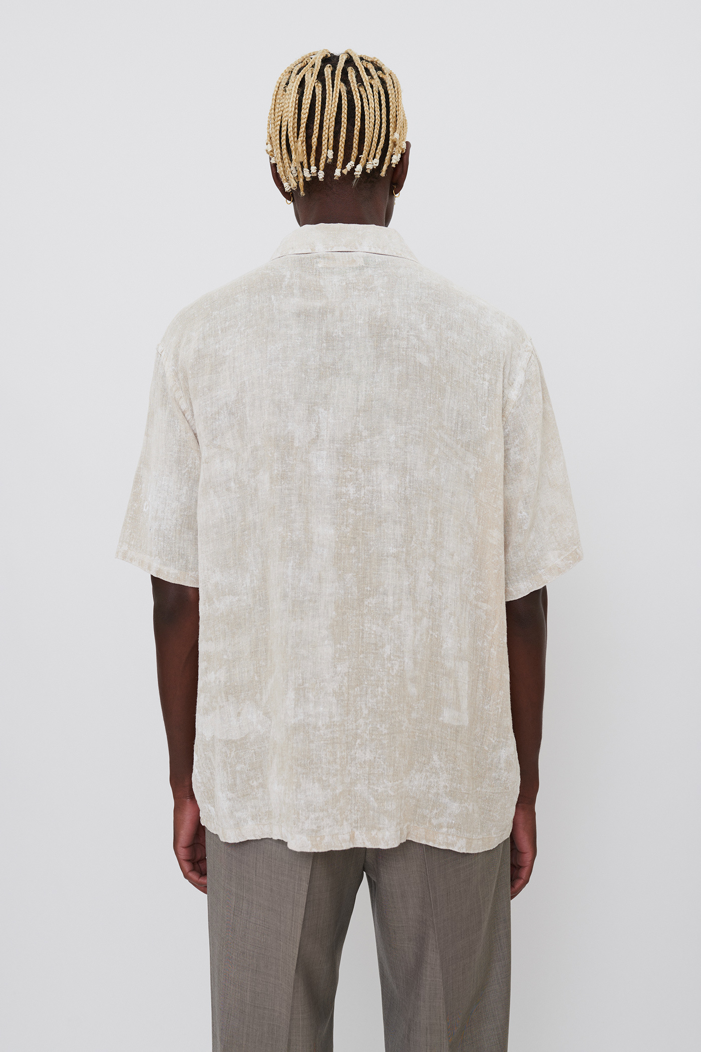 Our Box Shirt Shortsleeve is true to size with a boxy fit. The model is 185 cm tall and wearing a size 48.