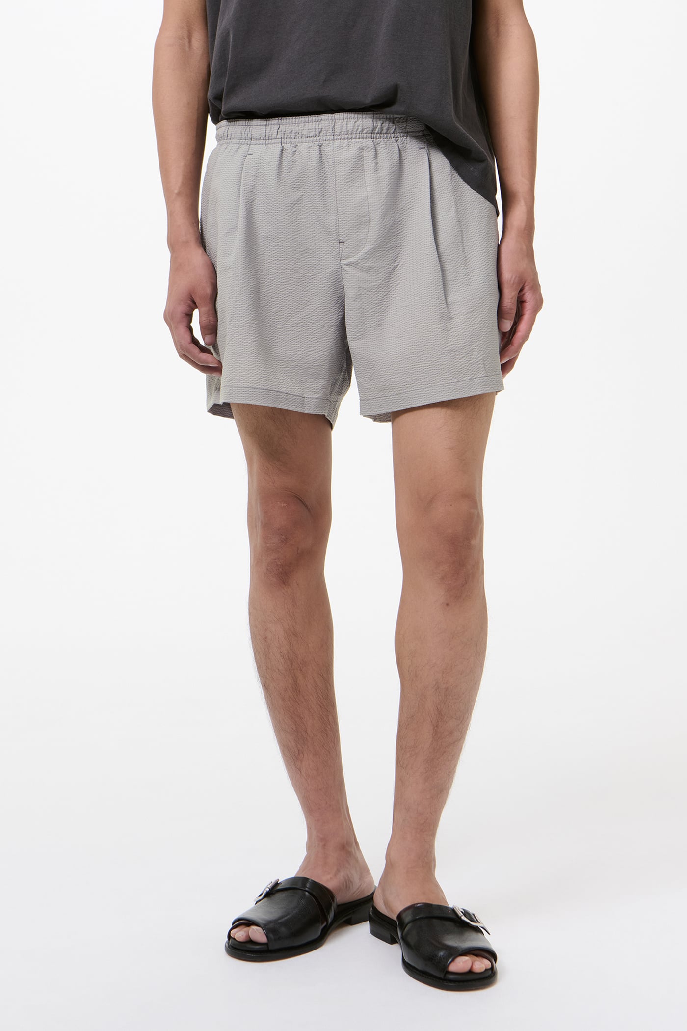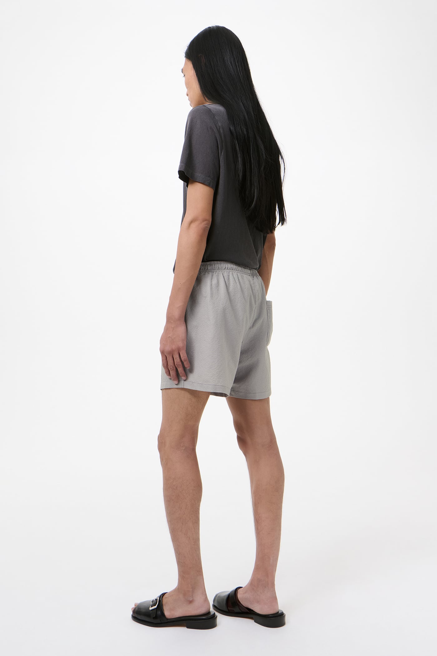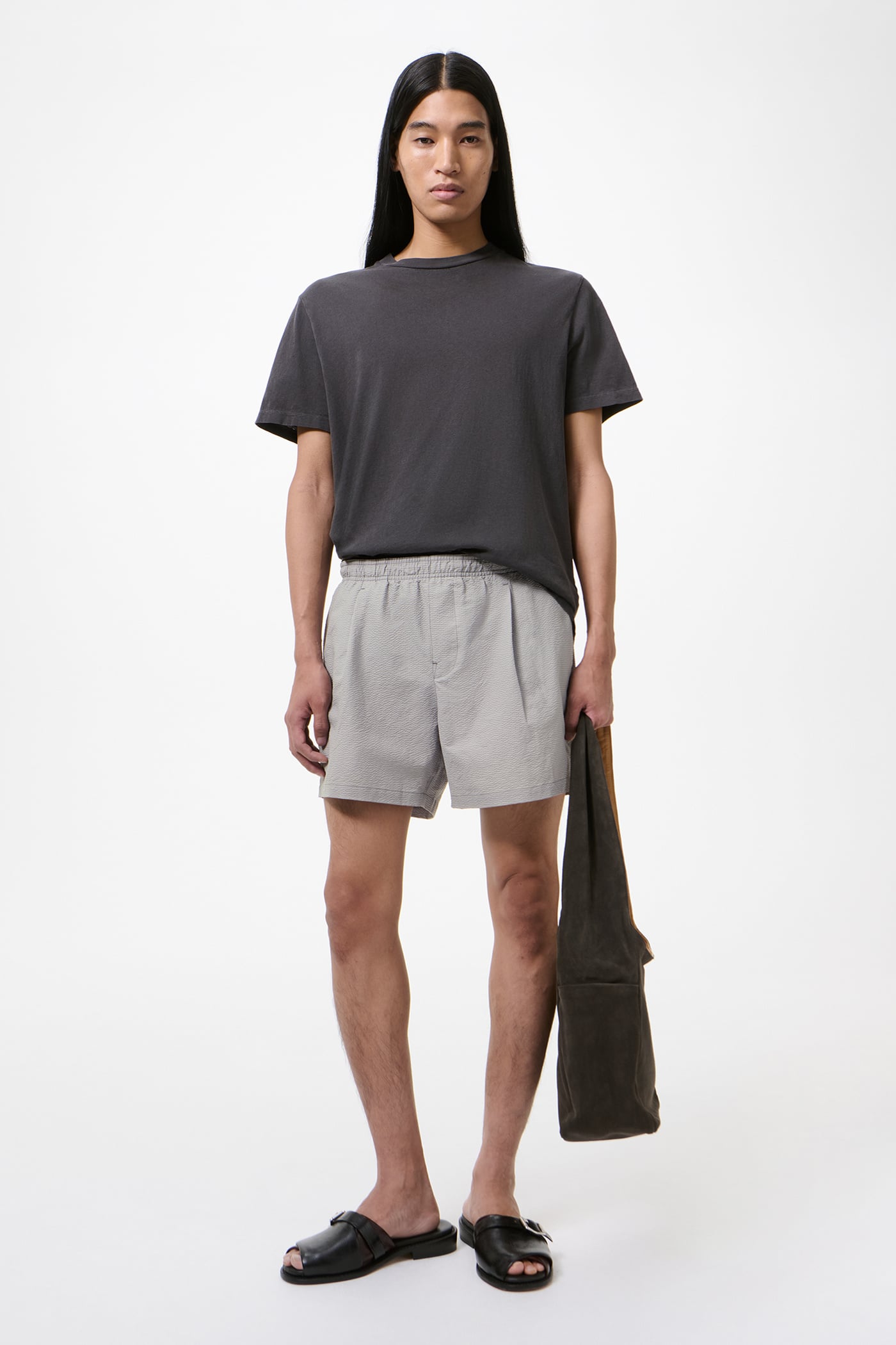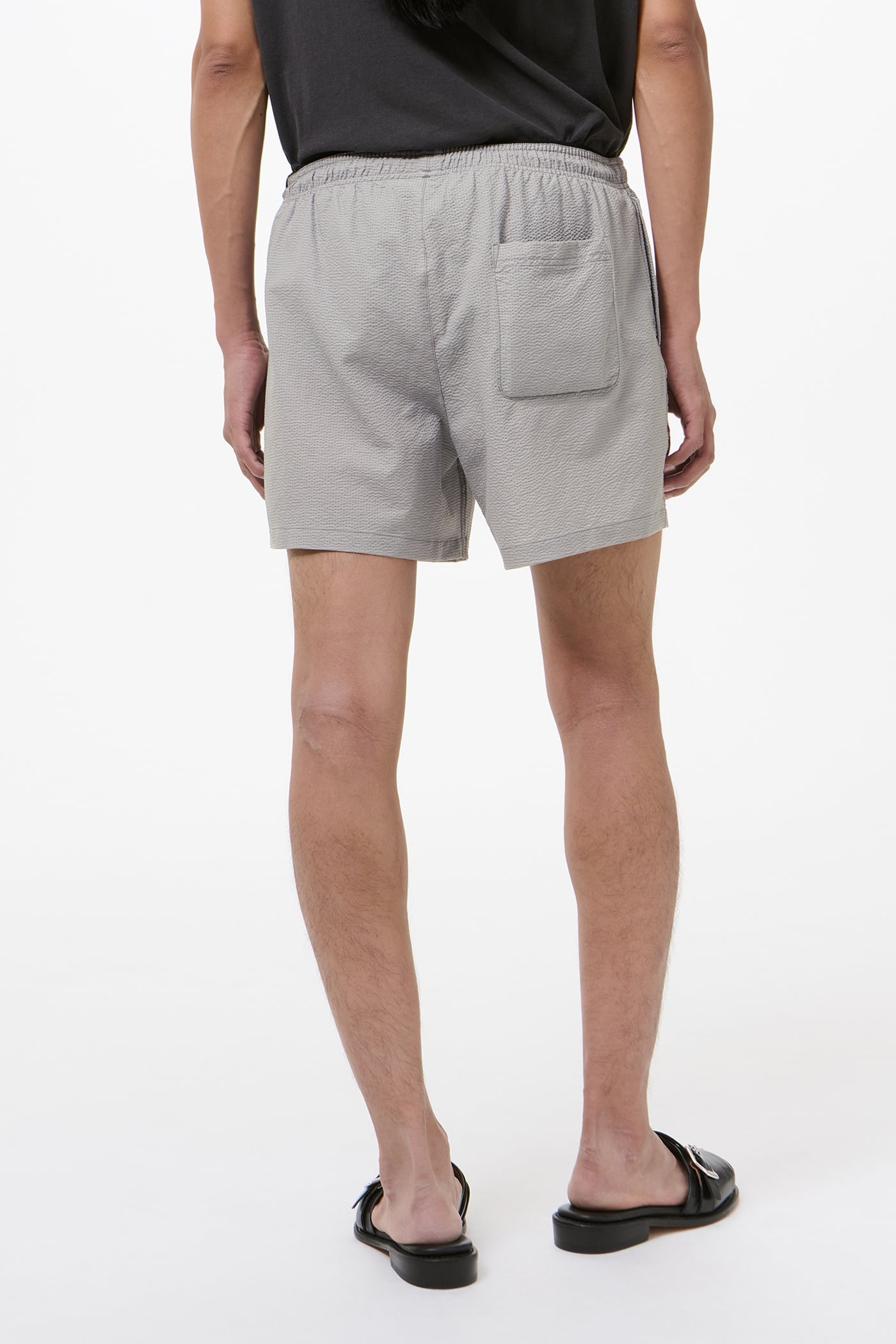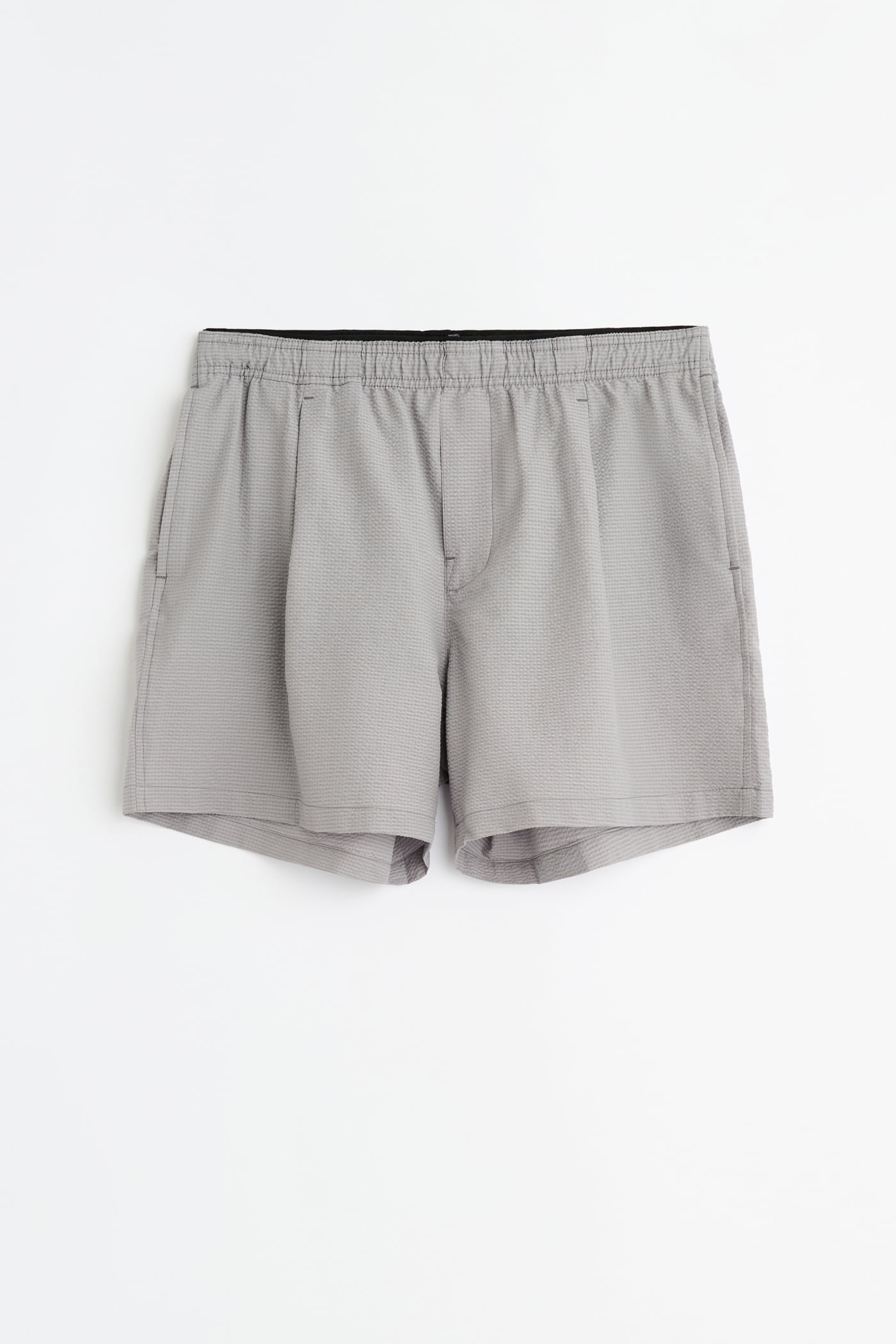 Our Boxer Trunk in Saltstone Coast Seersucker. Produced in a Japanese seersucker fabric woven from polyester and cotton, the men's Boxer Trunk has a high-thigh fit and takes its inspiration from classic boxer shorts, featuring a visible elastic waistband on the inside and a supportive mesh lining. Delivered with a branded bag cut from the shell fabric.