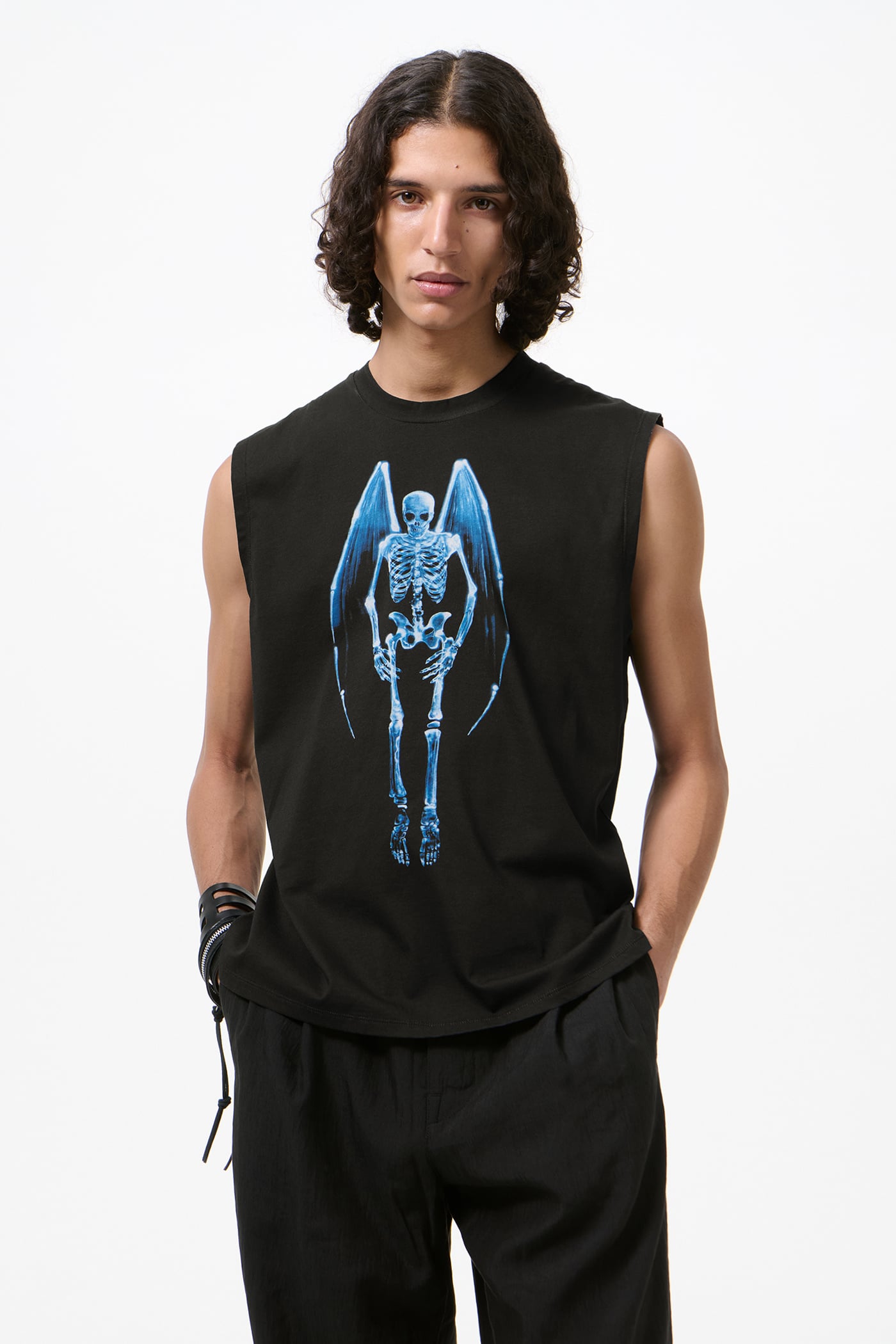 Our Breathe Tank in Fallen Angel Print. Produced in a Portuguese cotton fabric, the Breathe Tank has a wide, boxy fit and features a sleeveless cut, an overlocked neck cuff and a straight hem, finished with our Fallen Angel print.