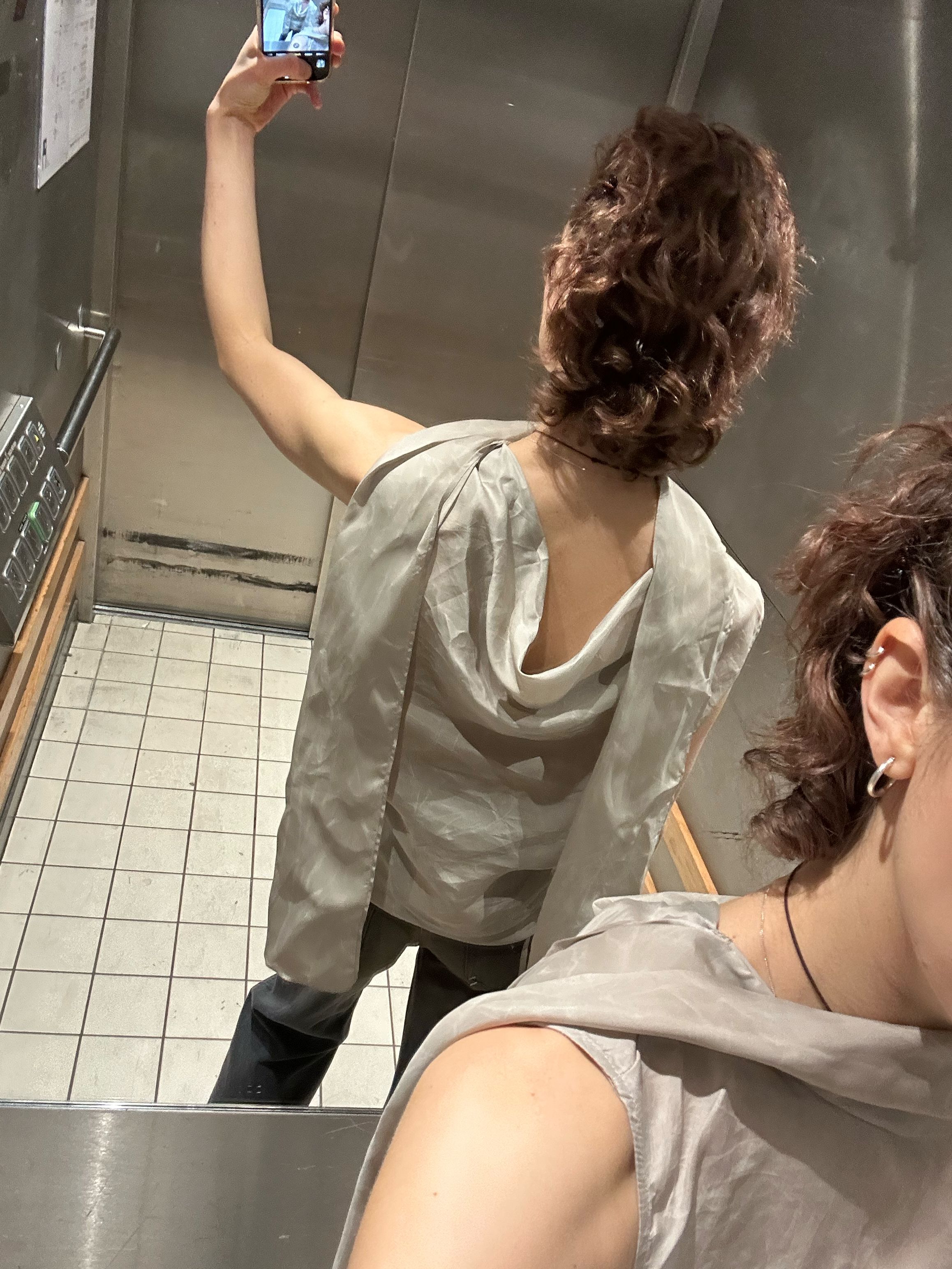 Cissel: I'm wearing the Virtuous Top, a style I've worked on. Originally, the idea was to create a piece with a hood. Then we tweaked it, turned it backwards, and it became something else. A nice mix of chic and cool.