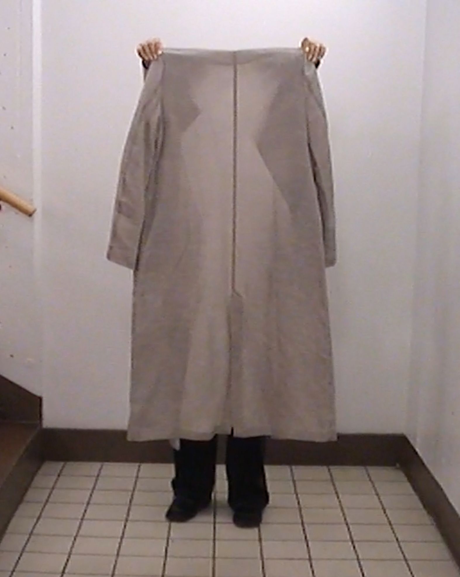 Patrycja: The Origami Coat, a fun coat of my own design. Although it's wool, the fabric is quite techy. The pleating in the back gives it a floating feel.