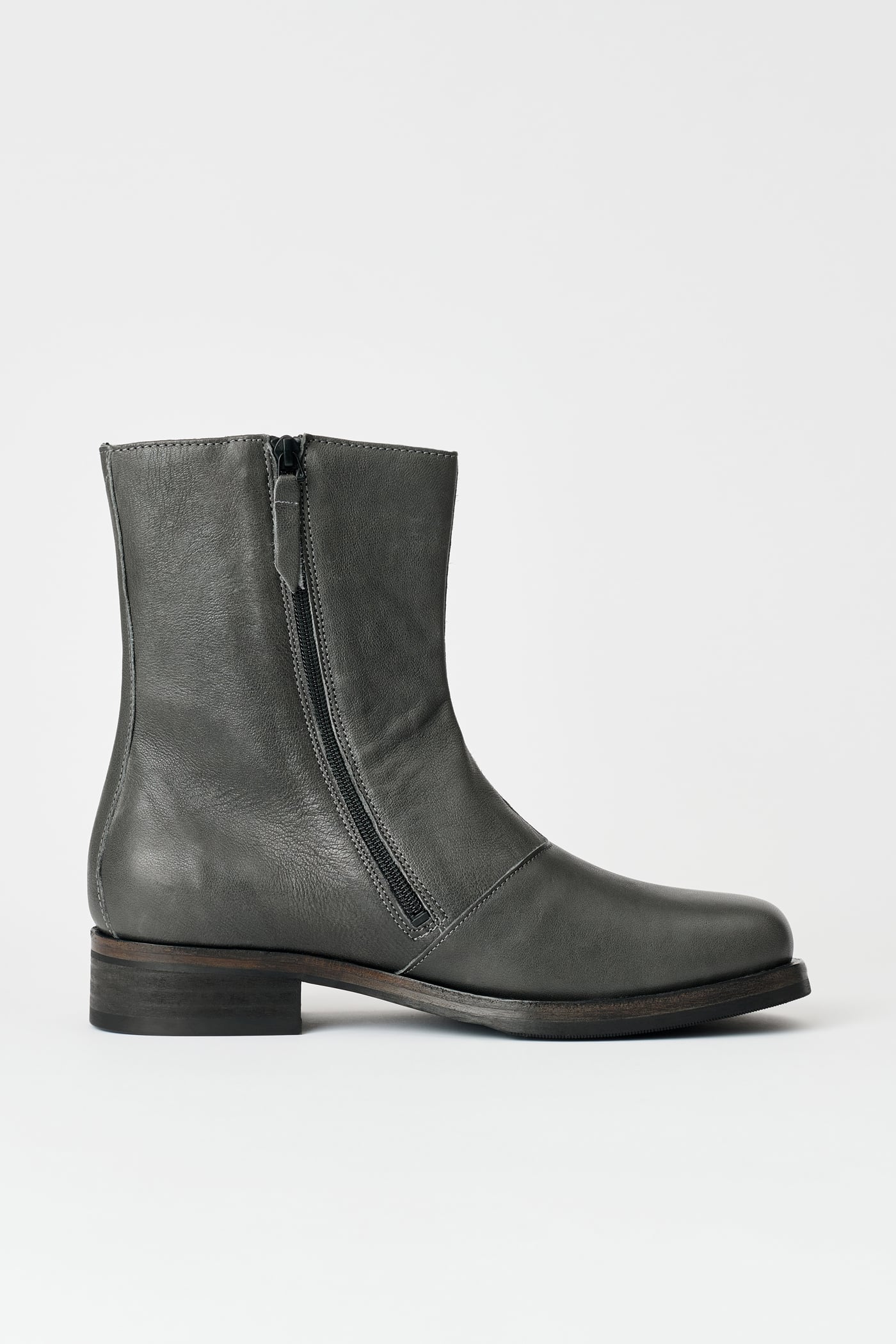 Our Camion Boot in Ash Grey Leather. Produced in an Italian sheep leather, our Camion Boot features a Vibram outsole, leather Kilger midsole and a YKK side zip closure with a leather pull tab.
