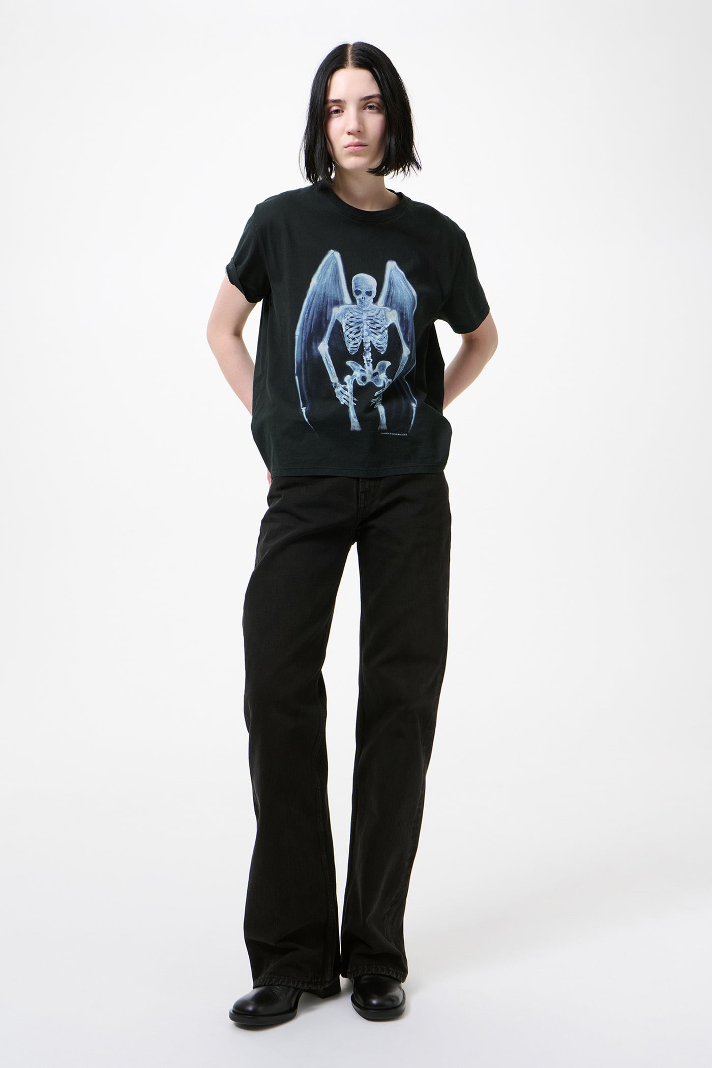 Our Classic T-Shirt in Fallen Angel Print. Produced in Portuguese cotton jersey, the Classic T-Shirt has a regular fit and features our Fallen Angel print, a fine rib collar with a wider neck hole, topstitch detail at the neckline and a straight hem.