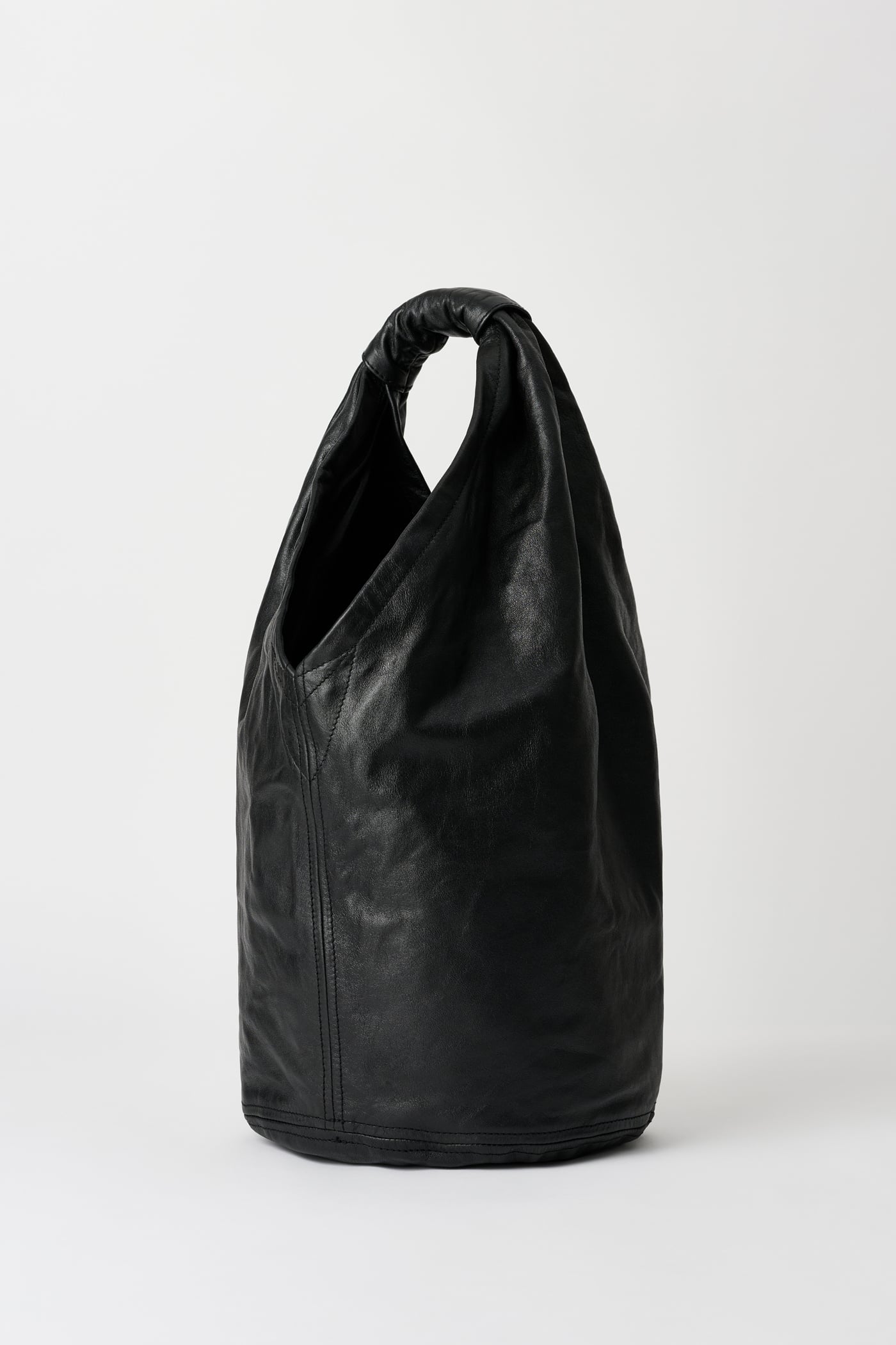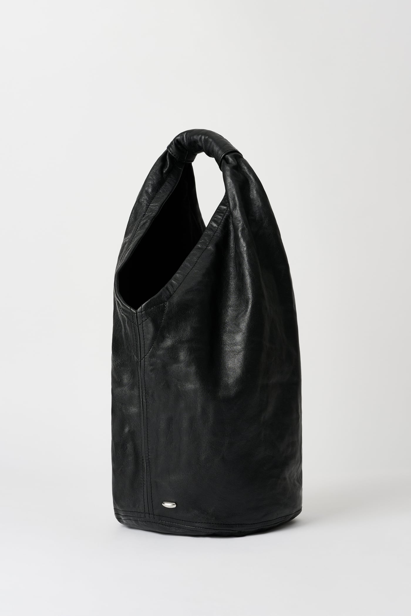 Our Fofo Drip Bag in Malleable Black Bull Hide. Produced in Italian bull leather, the Fofo Drip Bag features a large central pocket, a shoulder strap and a reinforced carry handle.