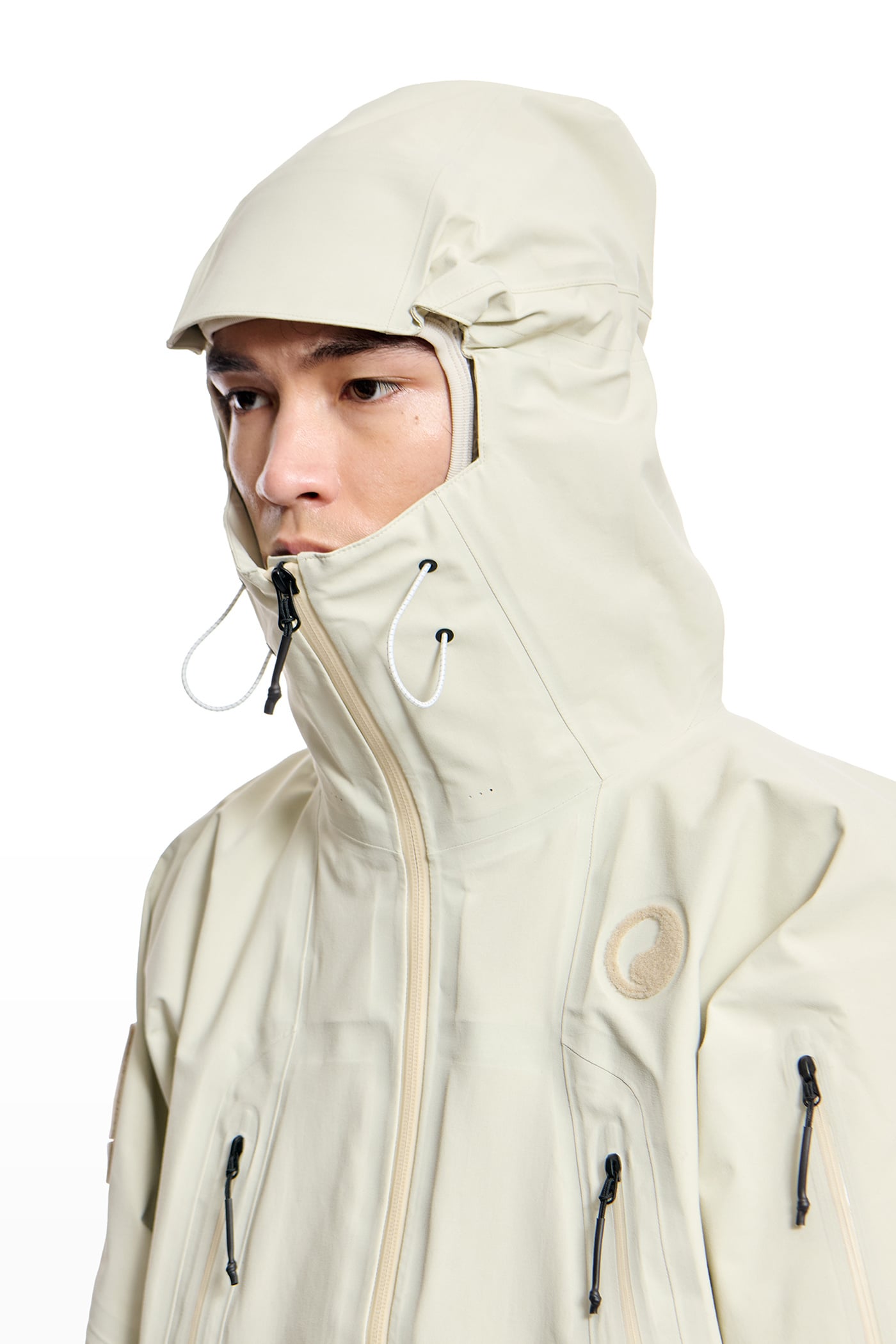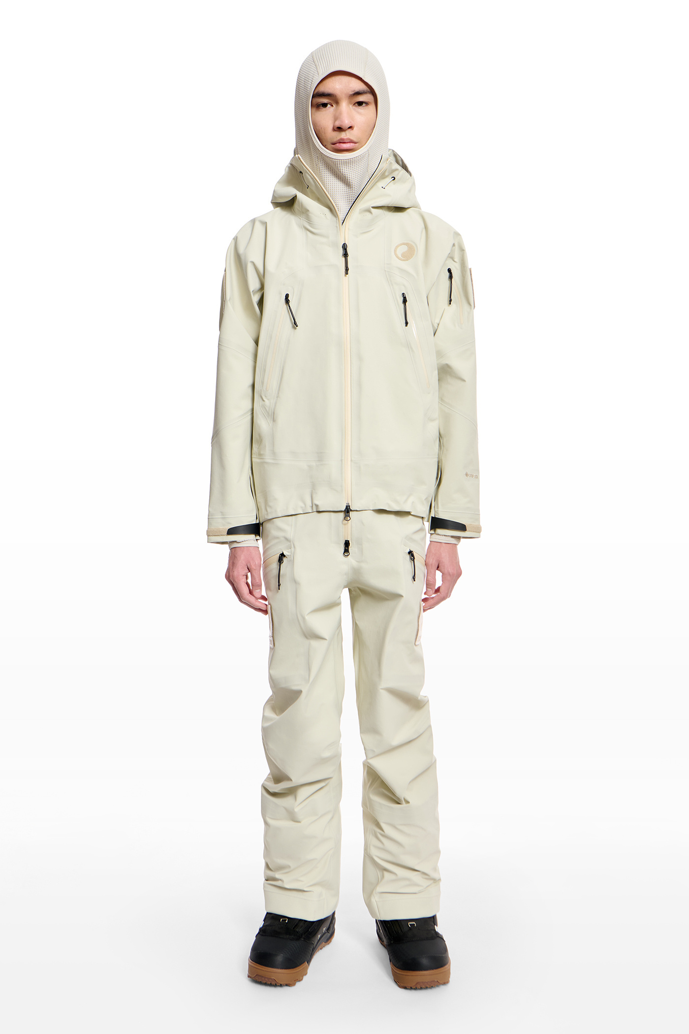 The 3-layer GORE-TEX products material offers a dry hand feel while providing waterproof and breathable protection. The silhouette is slightly wide, making it suitable for both outdoor environments and daily urban life.