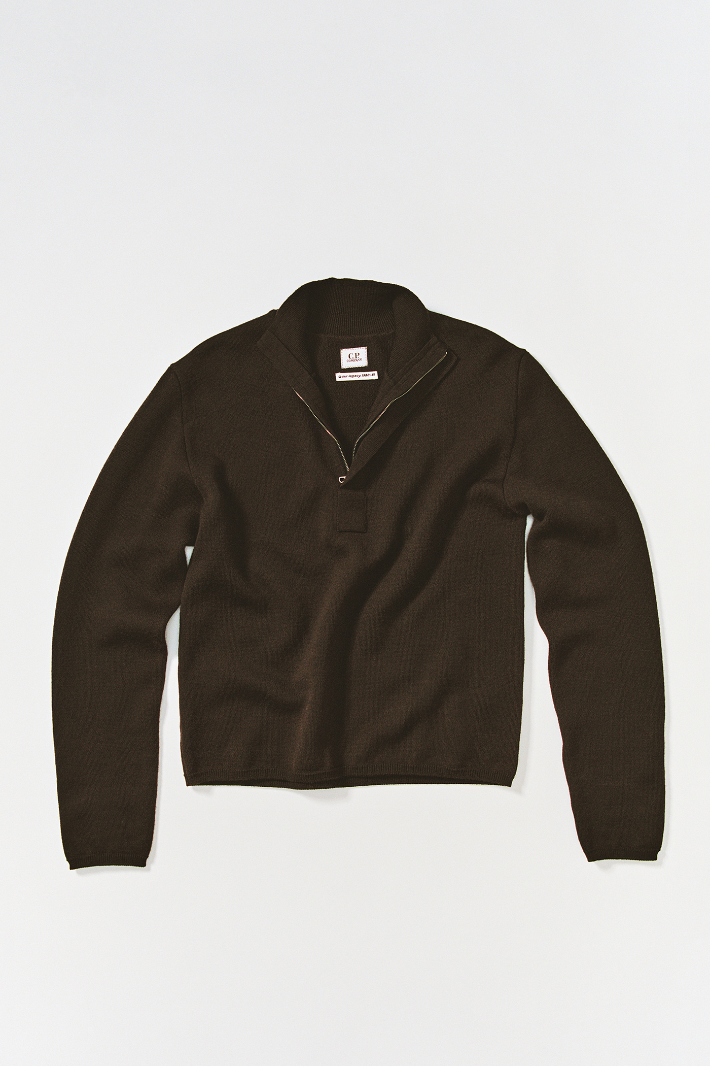 Guapa Knit in After Dark. Guapa knit is crafted from Italian virgin wool for the collaboration between Our Legacy WORK SHOP and C.P. Company. Designed through research in the Massimo Osti archive, Guapa knit is referencing archival knitwear details translated to a classic Our Legacy fit. Featuring a funnel neck, hidden Lampo half zip opening and yarn dyed. Regular fit.