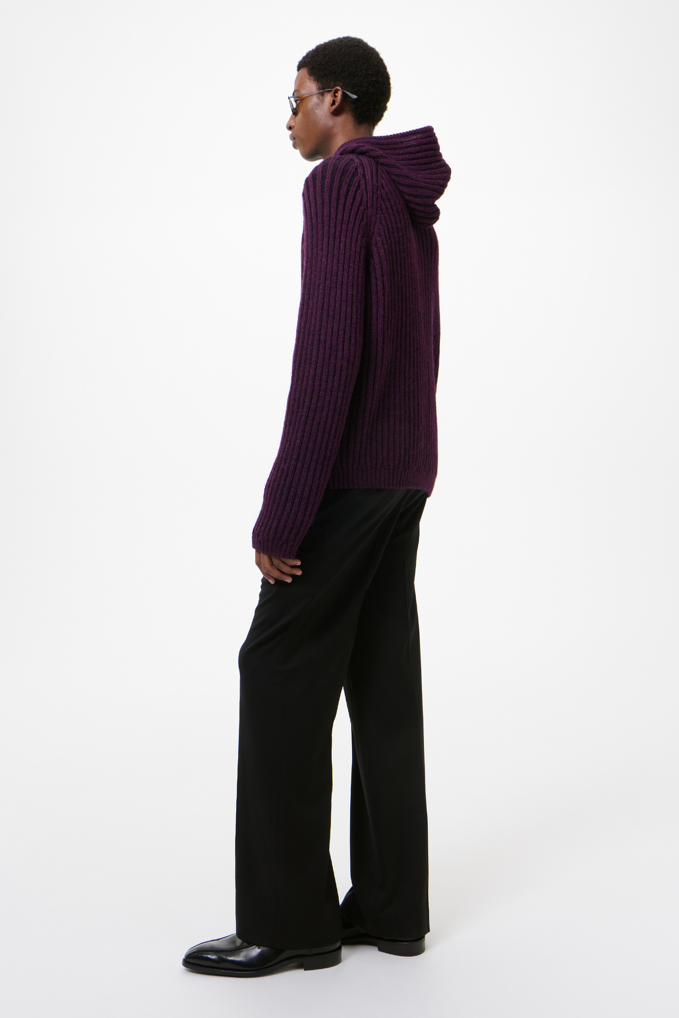 This garment is manufactured using a carefully sourced yarn. The natural characteristics of the yarn, combined with the construction of the knit allows the garment to expand when worn. The garment shall be shaped by its wearer and naturally distress over time to finish the design process. To help keep the integrity of the garment please store the garment folded.