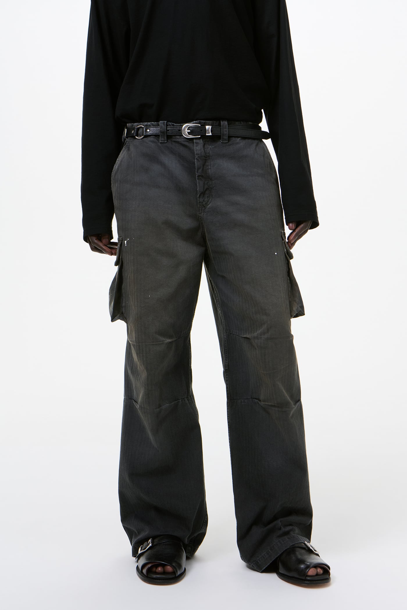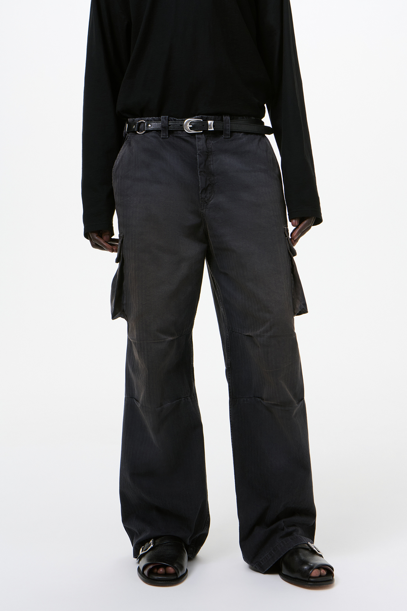 Our Mount Cargo in Nebula Wash Jungle Herringbone. Produced in Italian cotton herringbone fabric that has been pigment overdyed to echo a vintage piece, the fabric reveals rich, layered tones with a subtle lived-in character. The Mount Cargo has a relaxed, straight cut and features cargo side pockets, darted knees, a YKK zip fly, corozo buttons, brass snaps and a single back pocket.
