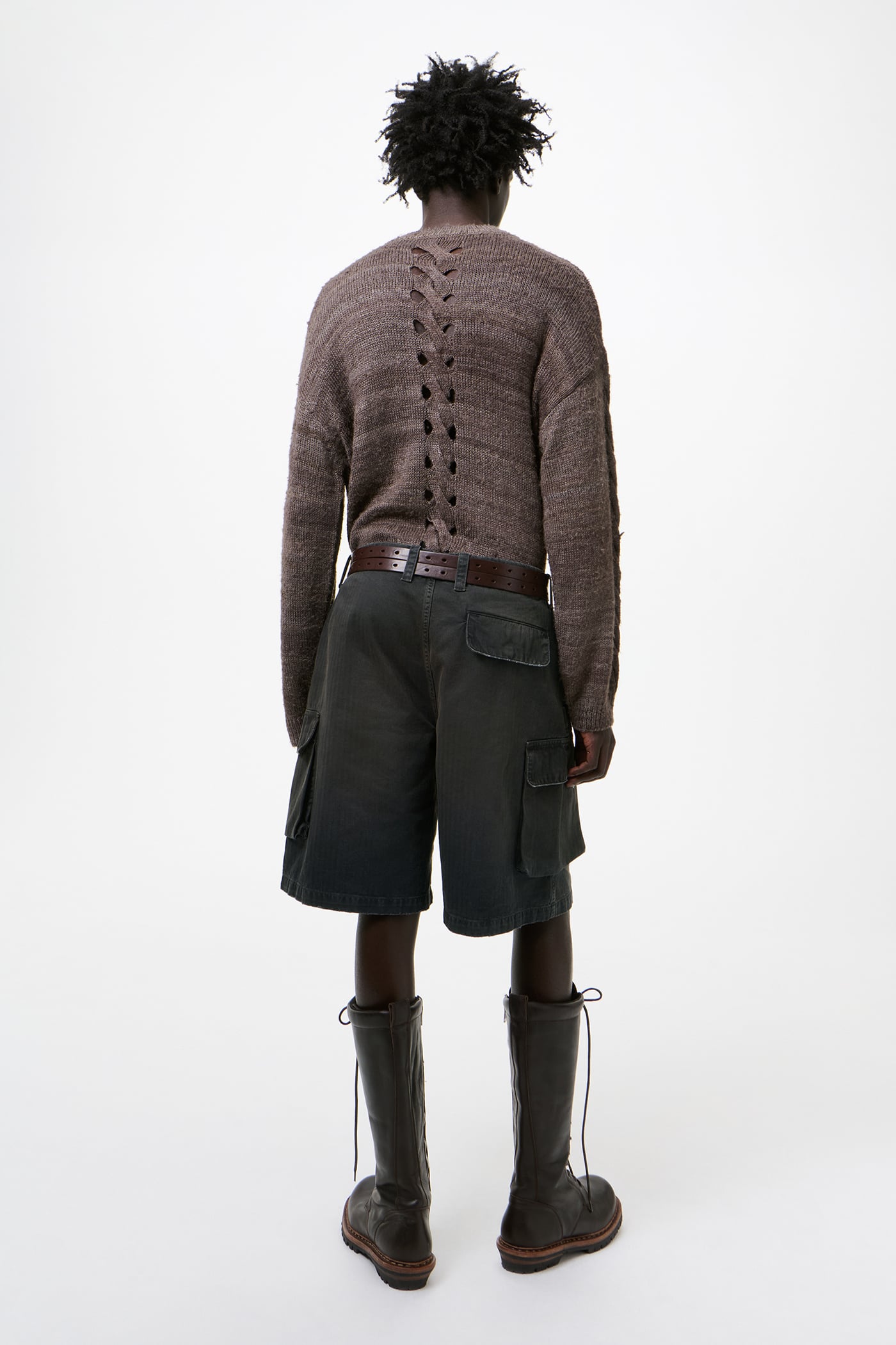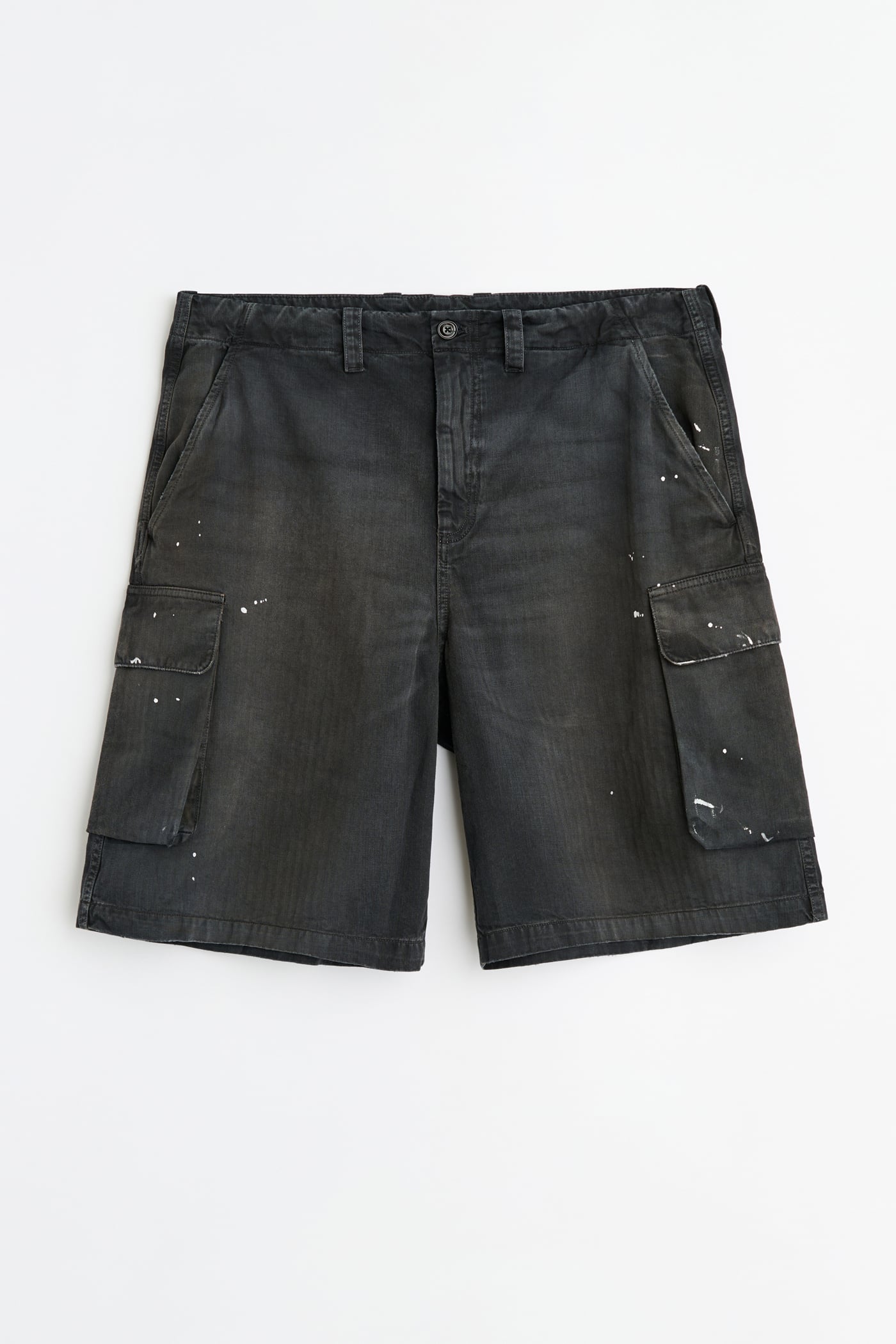 Our Mount Shorts in Nebula Wash Jungle Herringbone. Produced in Italian cotton herringbone fabric that has been pigment overdyed to echo a vintage piece, the fabric reveals rich, layered tones with a subtle lived-in character. The men's Mount Shorts have a relaxed fit and feature two cargo side pockets, a corozo button closure at the waist, a zip fly and one back pocket.