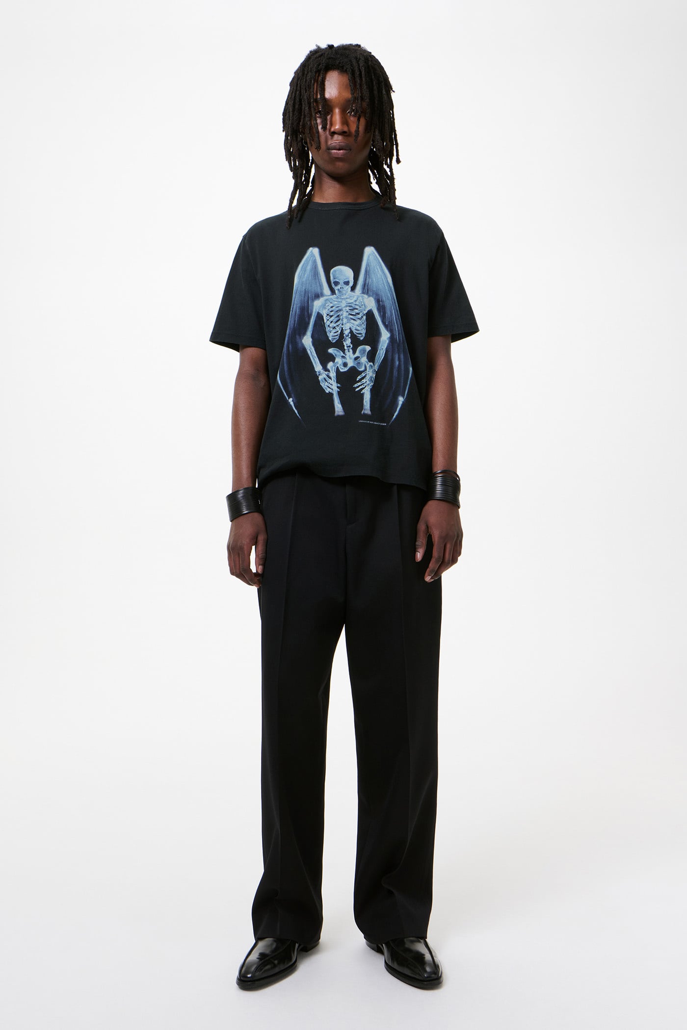 Our New Box T-Shirt in Fallen Angel Print. Produced in a fully printed Portuguese cotton jersey with our Fallen Angel print, the New Box T-shirt has a wide, boxy fit and features a fine rib collar, overlocked shoulder seams and a straight hem.