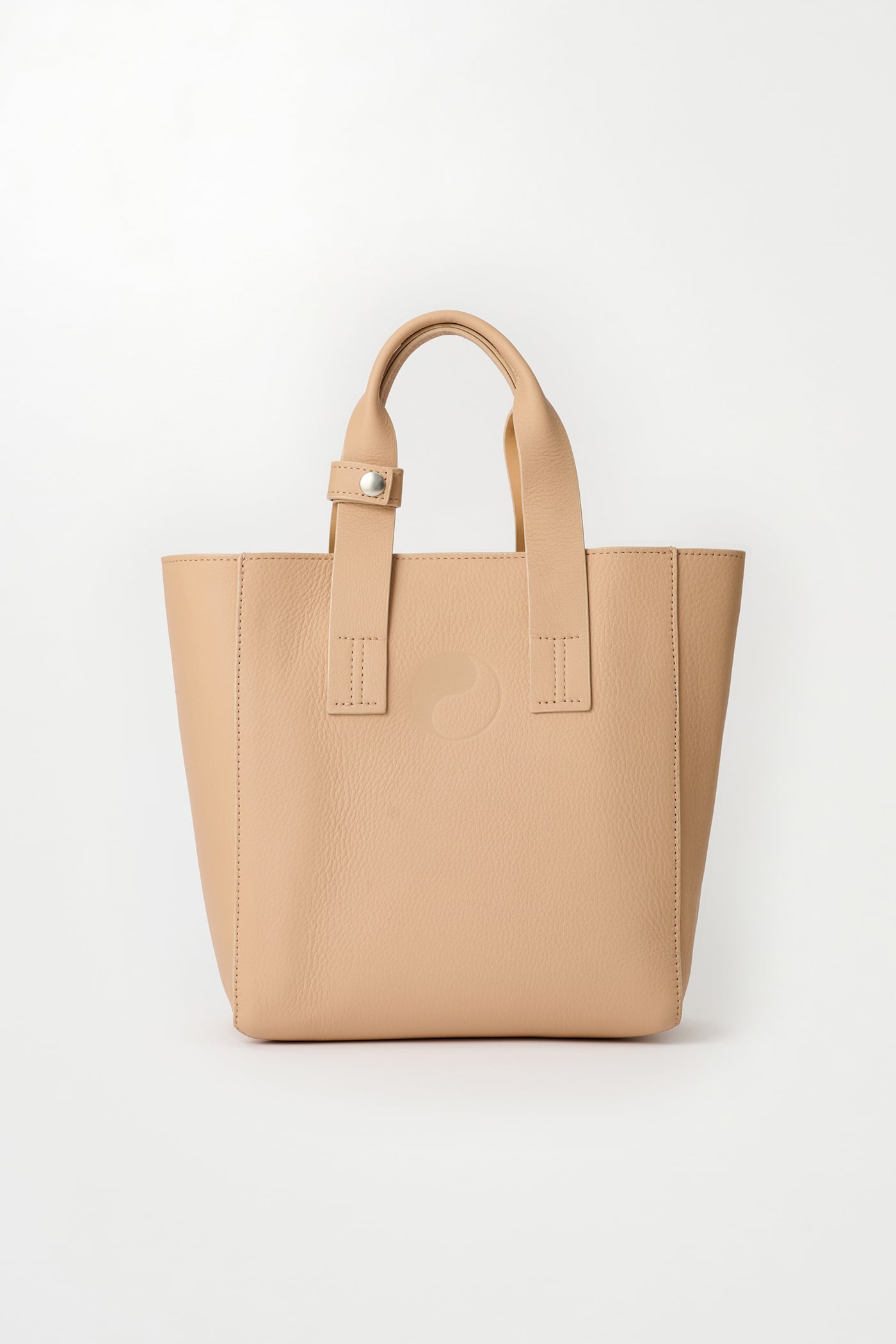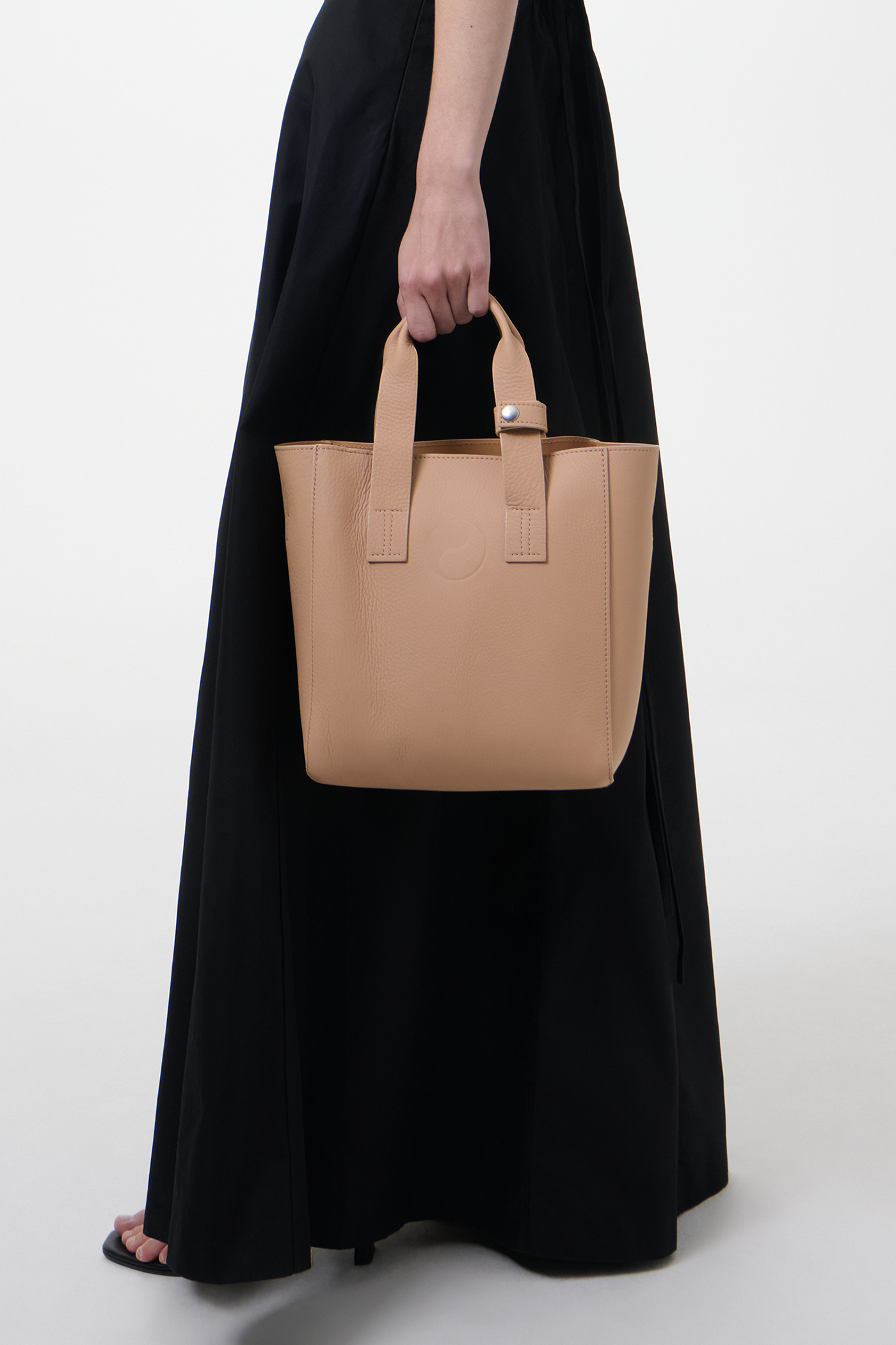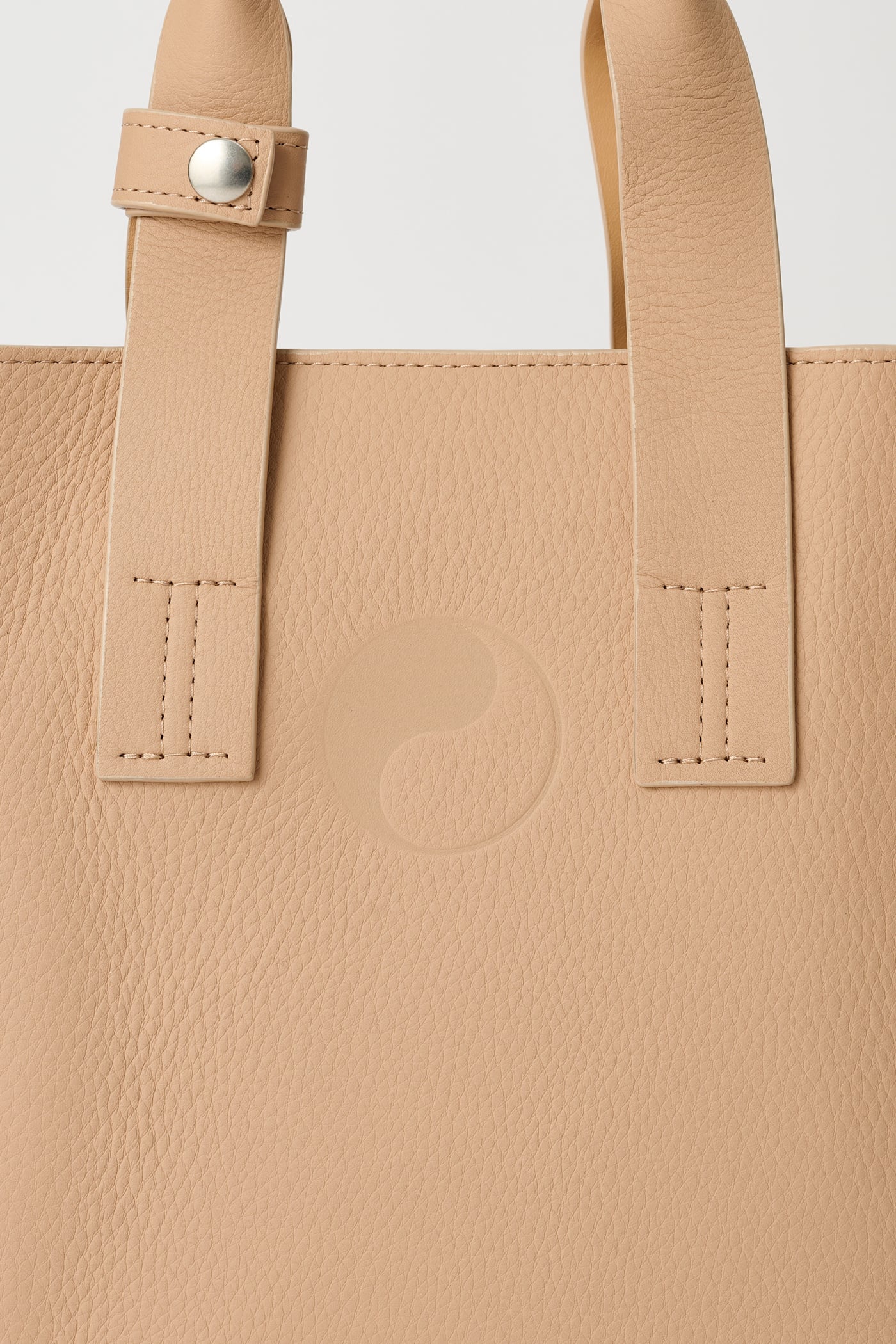 Our Party Tote in Powder. Produced in Dutch bovine leather, the Party Tote features a large central compartment, an inner pocket with double snap closure, patched and stitched leather carry handles, and a detachable shoulder strap. The tote includes debossed Yin Yang and Our Legacy logos and is fully leather lined.