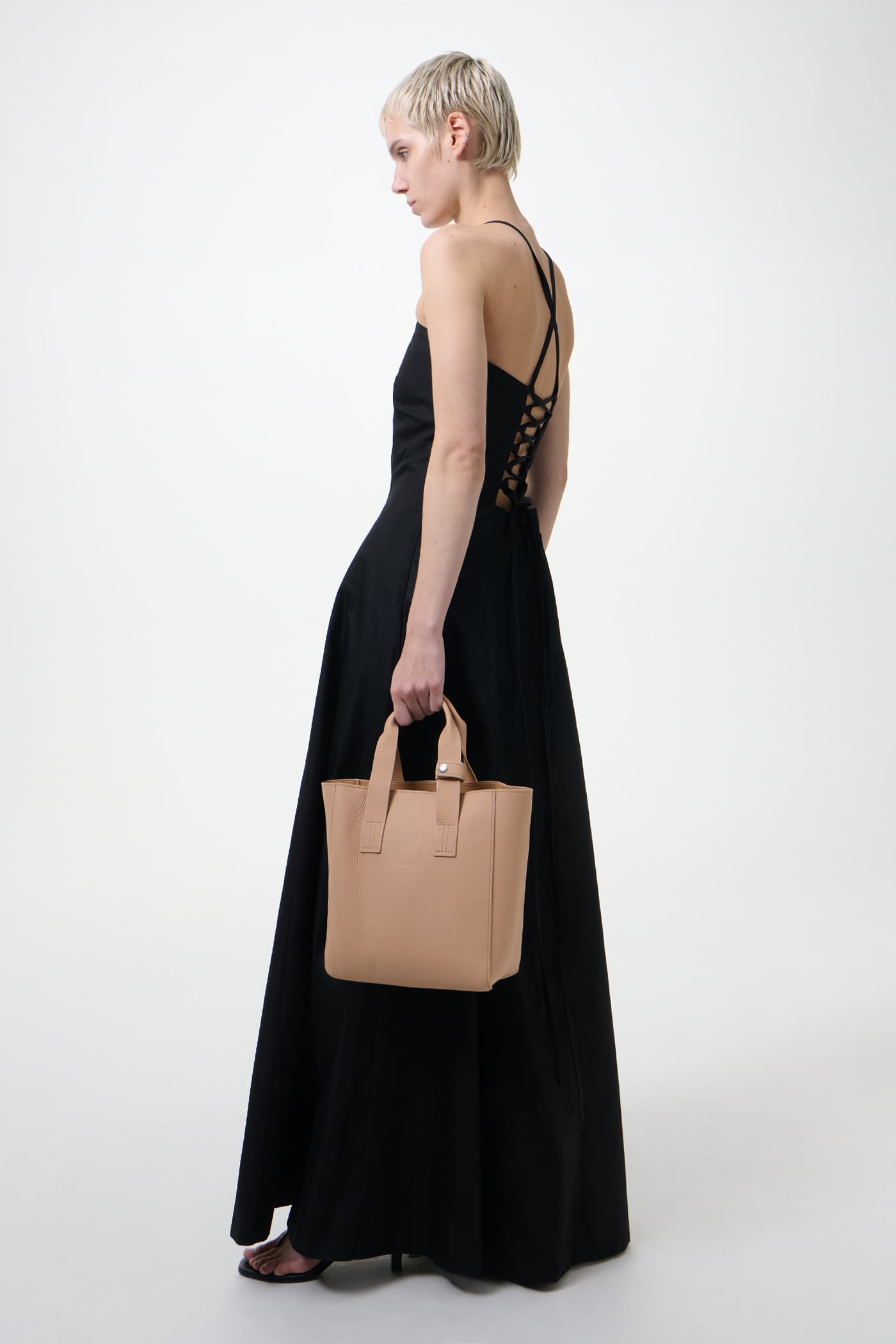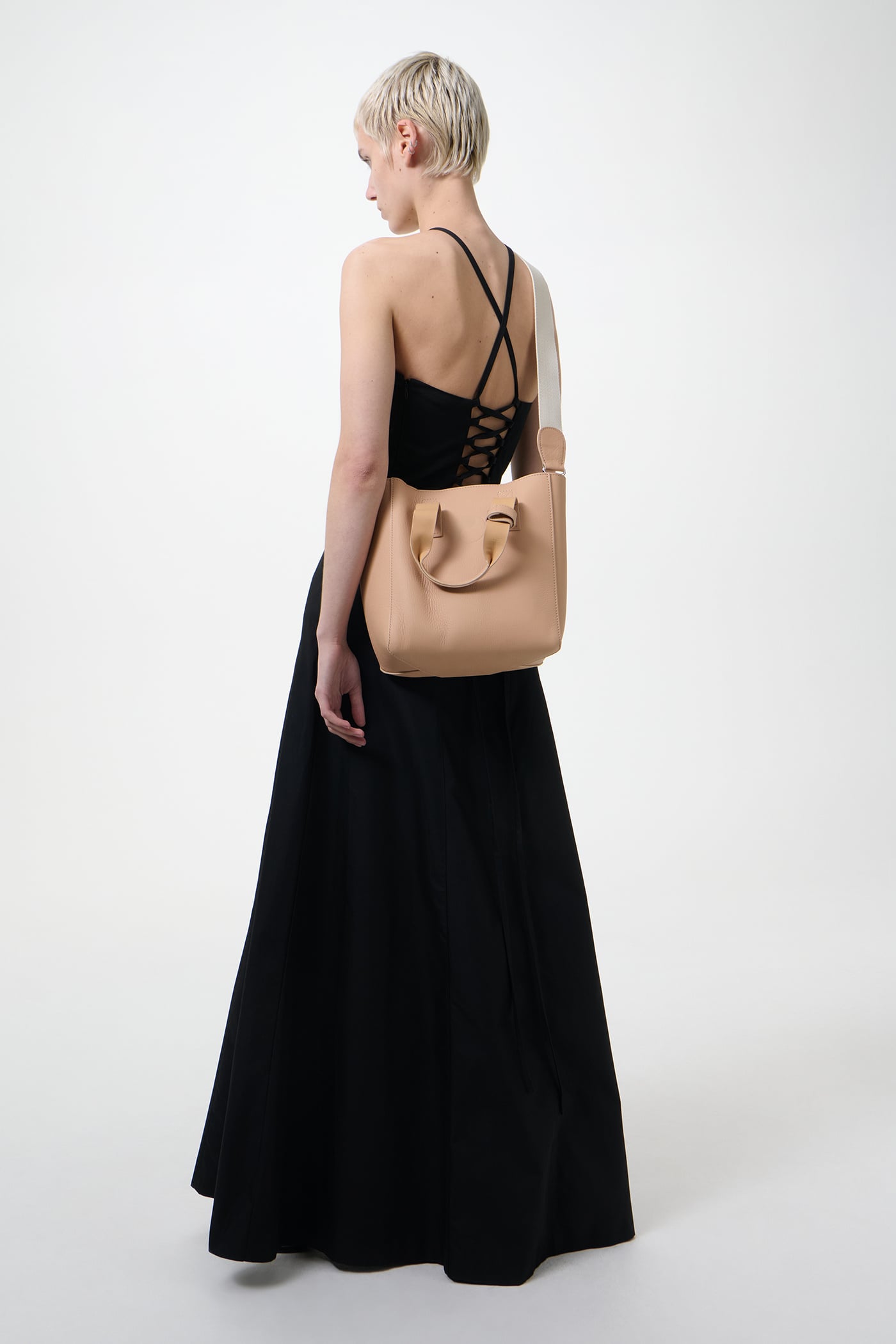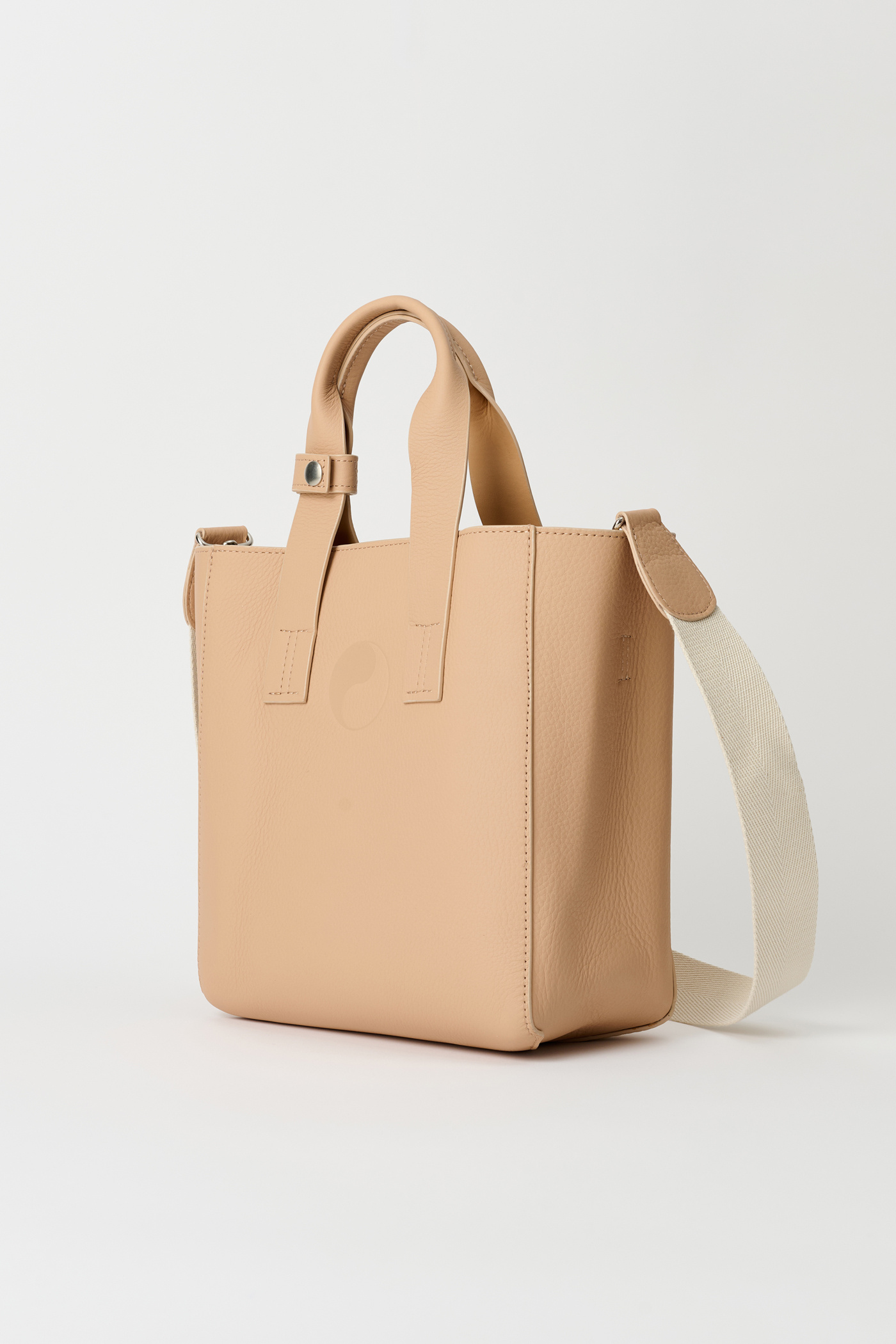 Our Party Tote in Powder. Produced in Dutch bovine leather, the Party Tote features a large central compartment, an inner pocket with double snap closure, patched and stitched leather carry handles, and a detachable shoulder strap. The tote includes debossed Yin Yang and Our Legacy logos and is fully leather lined.