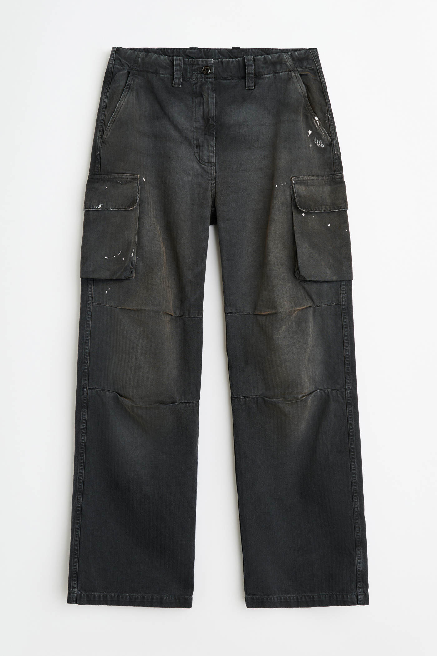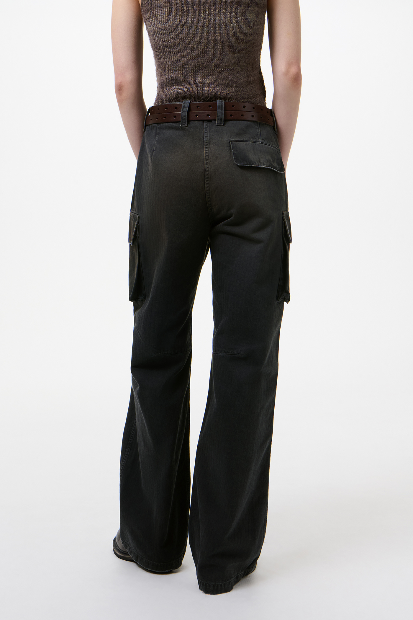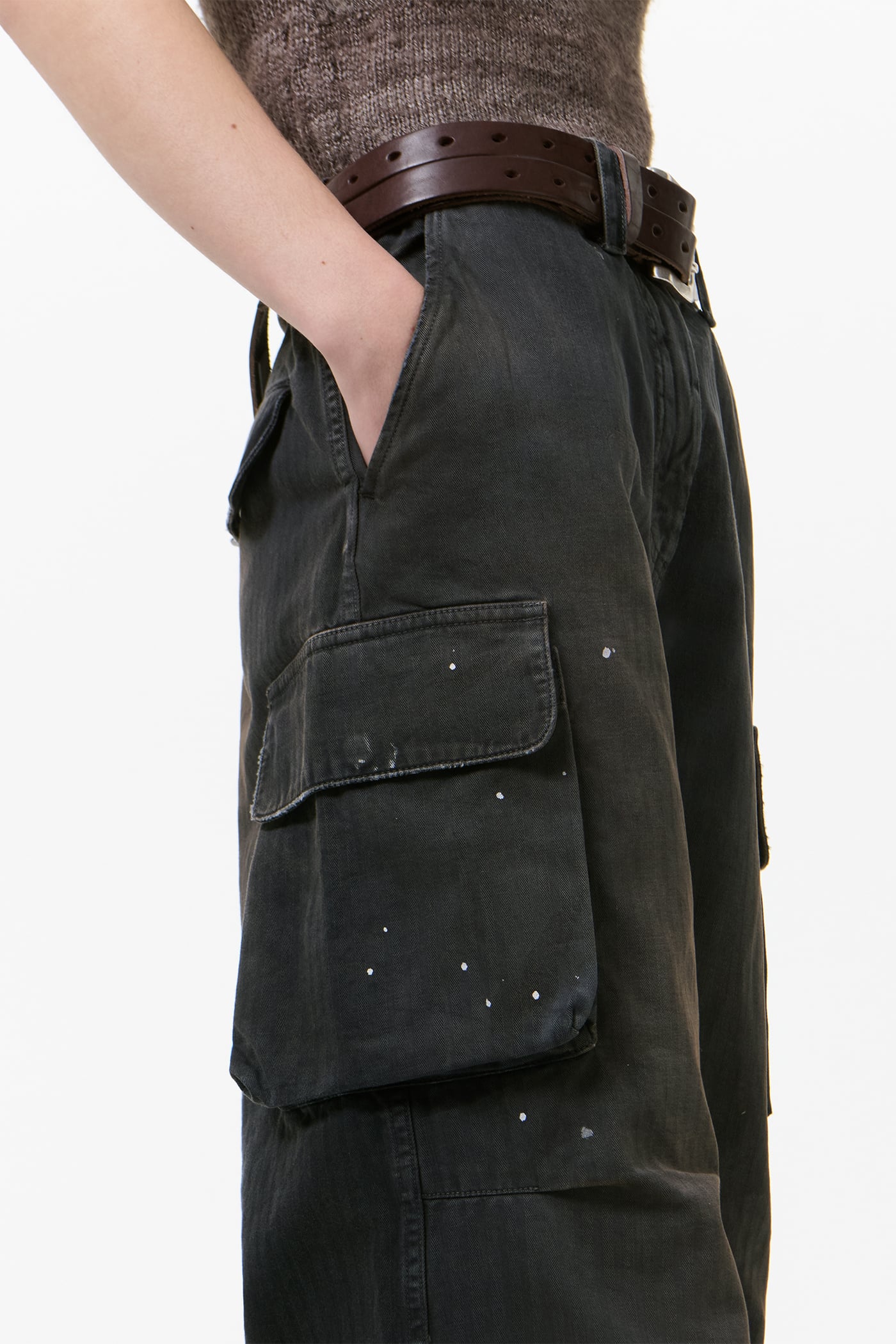 Our Peak Cargo in Nebula Wash Jungle Herringbone. Produced in Italian cotton herringbone fabric that has been pigment overdyed to echo a vintage piece, the fabric reveals rich, layered tones with a subtle lived-in character. The Peak Cargo has a relaxed, straight cut and features cargo side pockets, darted knees, a YKK zip fly, steel buttons, brass snaps and a single back pocket.