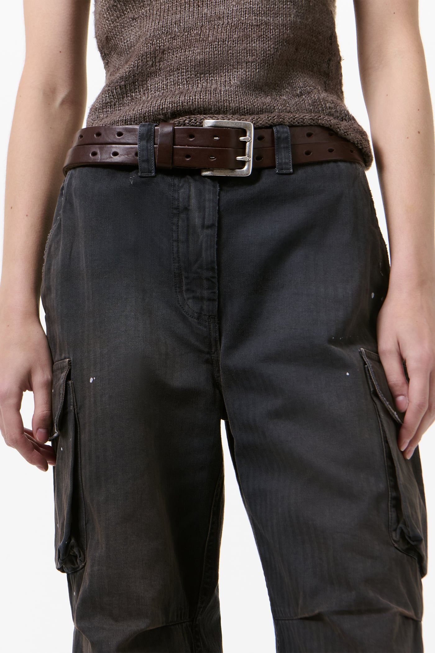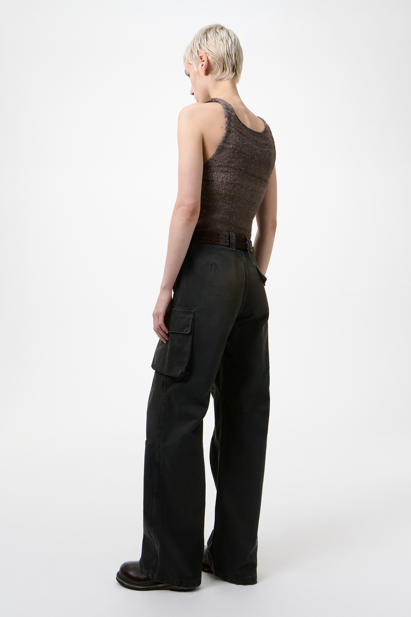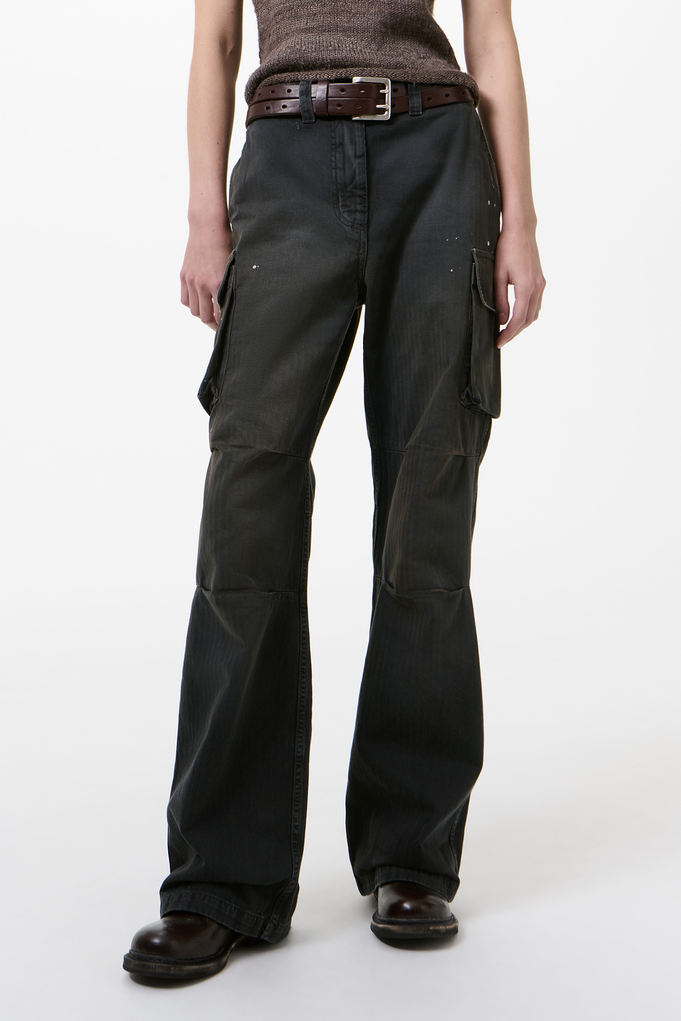 Our Peak Cargo in Nebula Wash Jungle Herringbone. Produced in Italian cotton herringbone fabric that has been pigment overdyed to echo a vintage piece, the fabric reveals rich, layered tones with a subtle lived-in character. The Peak Cargo has a relaxed, straight cut and features cargo side pockets, darted knees, a YKK zip fly, steel buttons, brass snaps and a single back pocket.