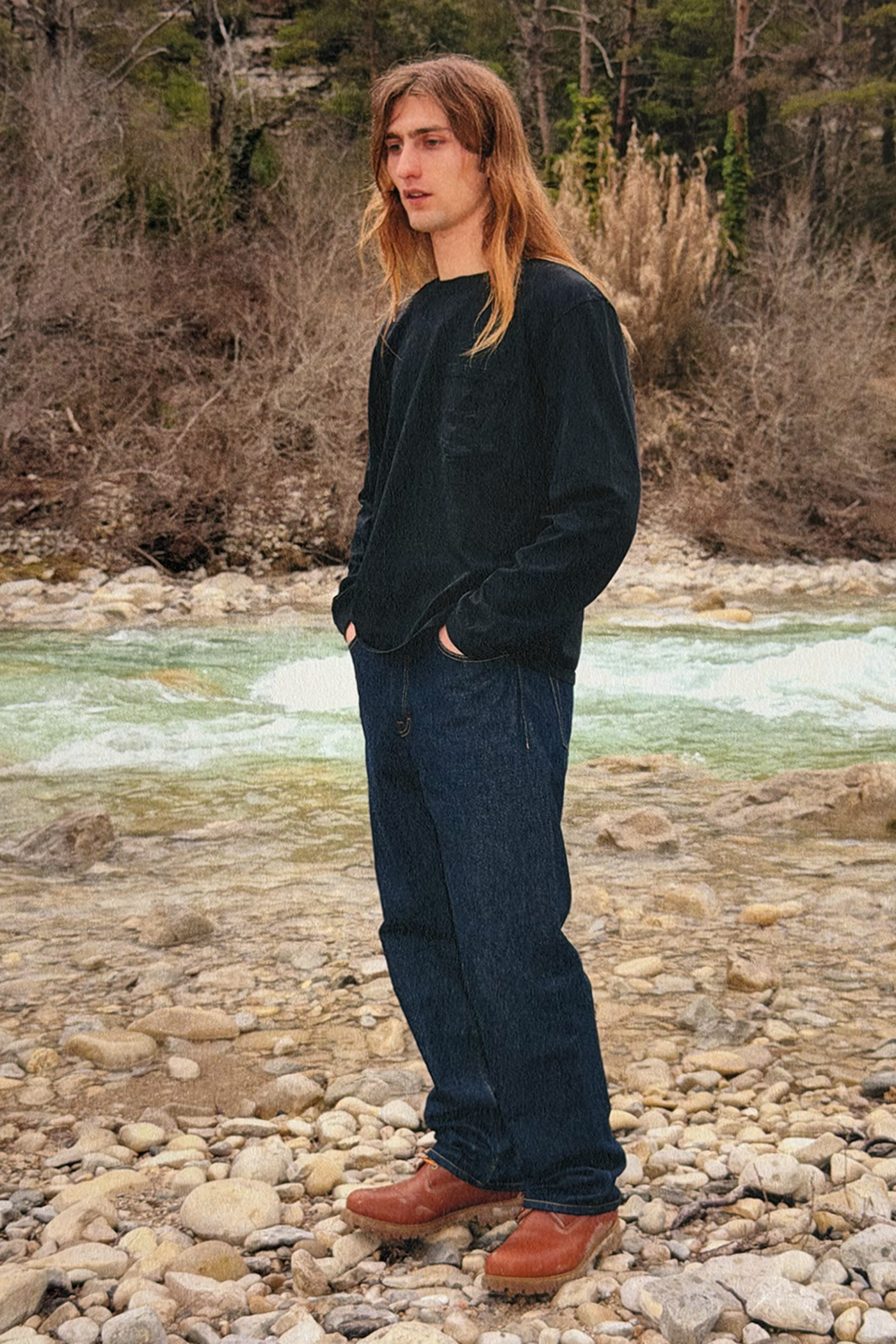 This garment is manufactured using carefully sourced material with a unique treatment process that will give each garment an individual shade and appearance. This technique could result in some color bleed onto lighter garments or surfaces. The garment shall be shaped by its wearer and naturally distress over time to finish the design process.