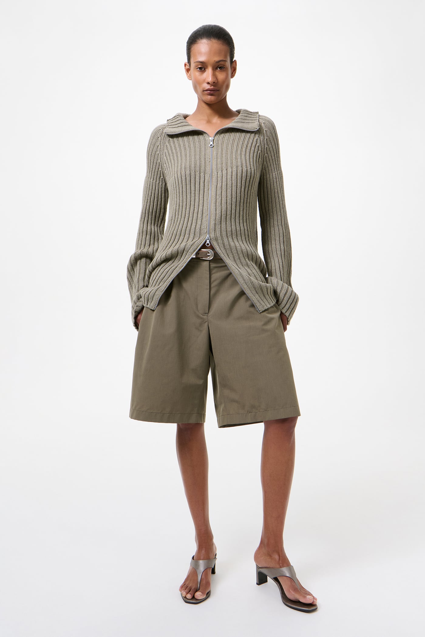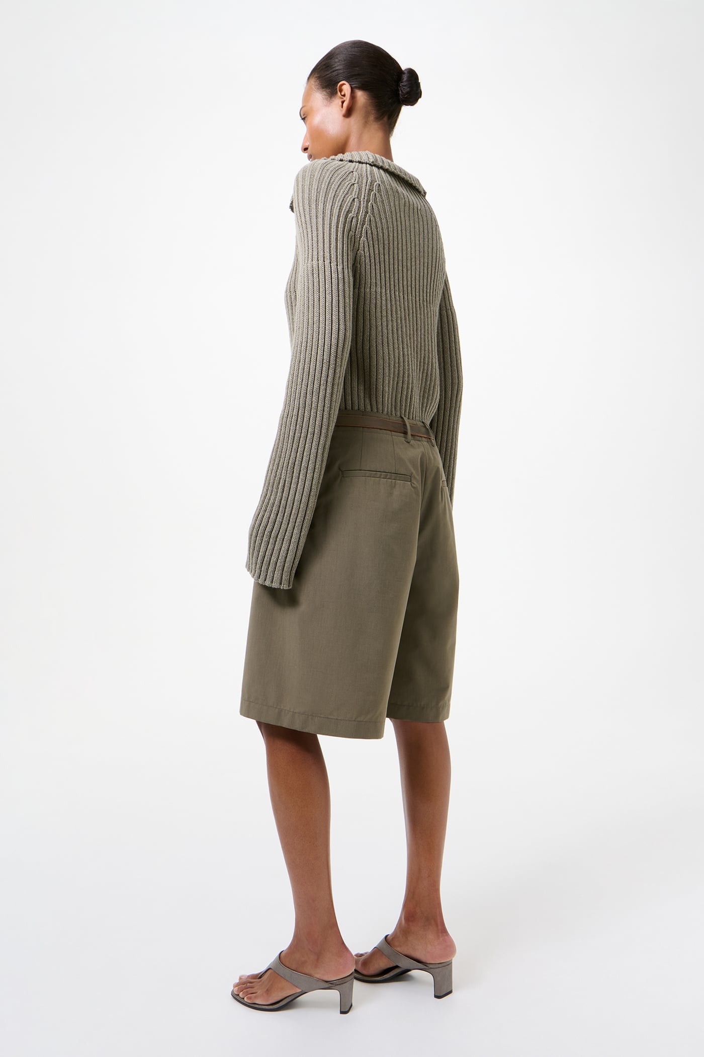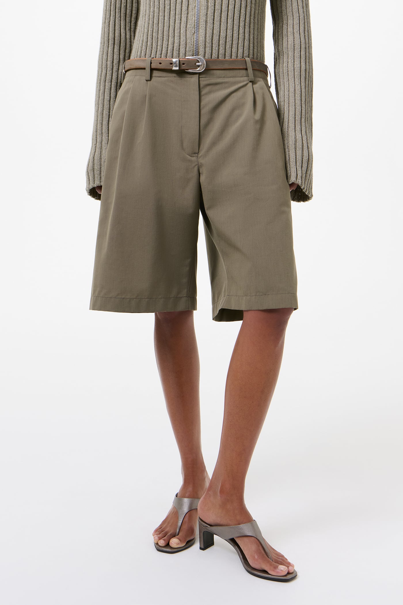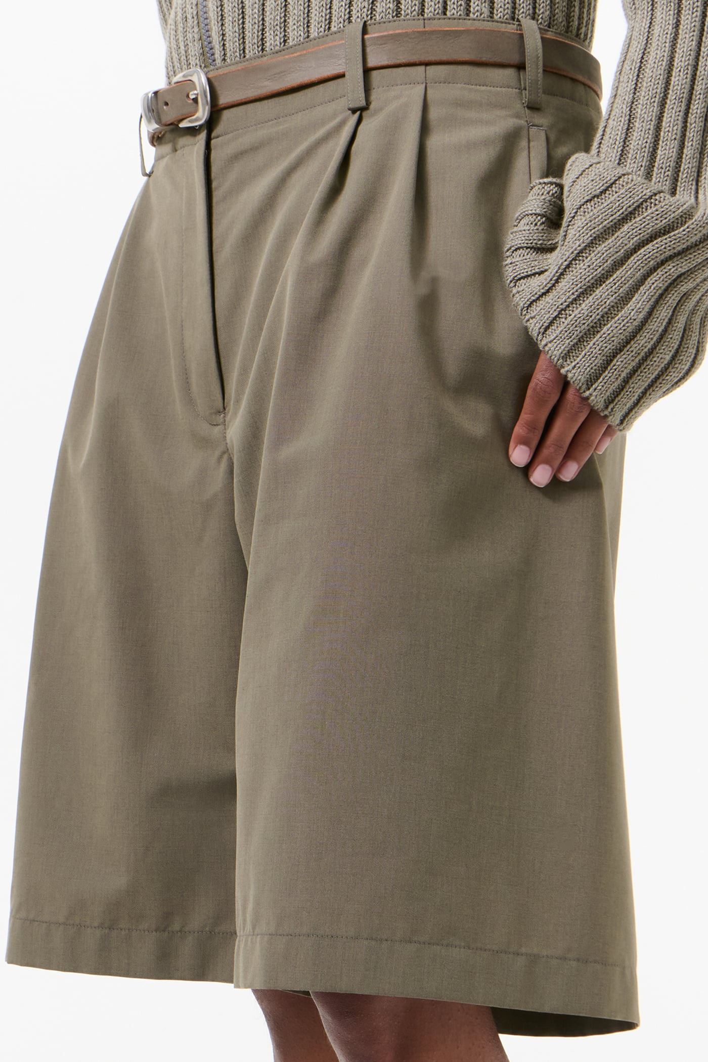 Our Ponte Shorts in Dry Leaf Balance Woolcot. Produced in an Italian virgin wool and cotton blend fabric, the Ponte Shorts have a relaxed fit and feature double pleats, a darted construction for shape, and a clean silhouette with no side seam. Details include a YKK zip fly, front welt pockets, welt back pockets and corozo buttons.