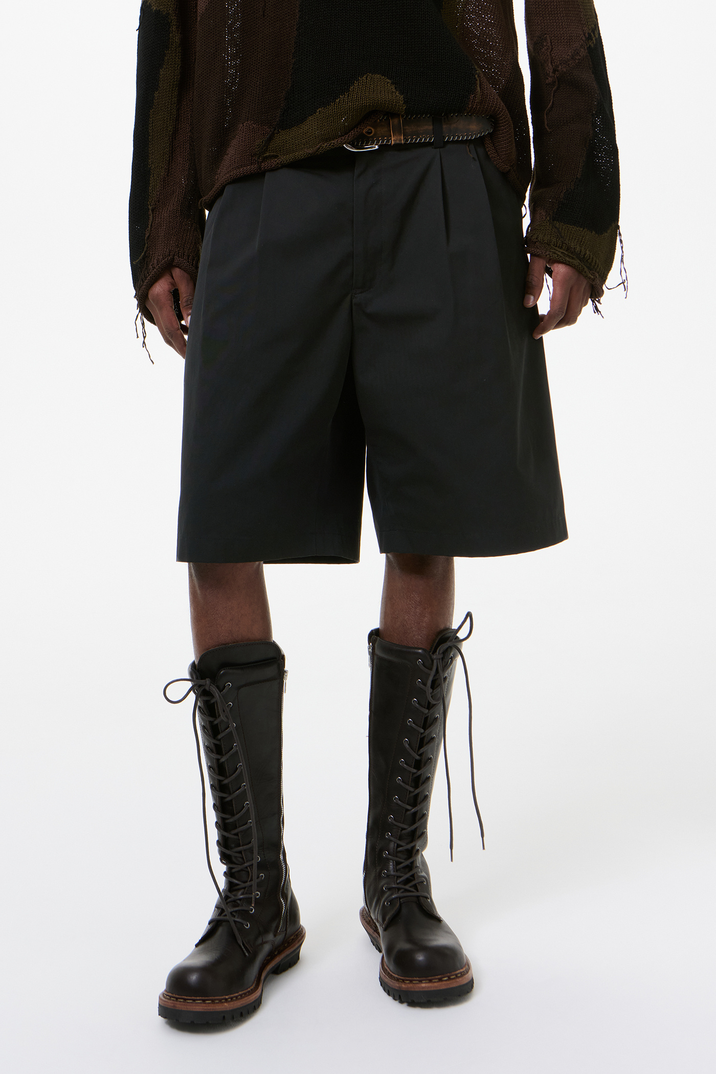 Our Ponte Shorts in Studio Black Micro Canvas. Produced in Italian cotton micro canvas, this premium micro canvas is defined by its dense, fine weave, offering a natural hand with a durable, structured feel. The Ponte Shorts have a relaxed fit and feature a YKK zip fly, front welt pockets, corozo buttons, darting for shape and welt back pockets.