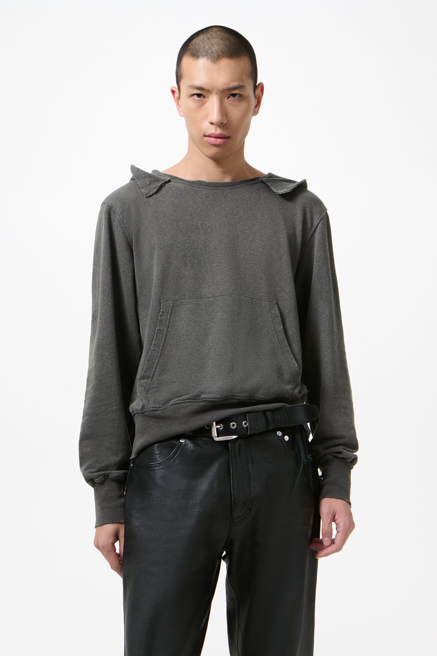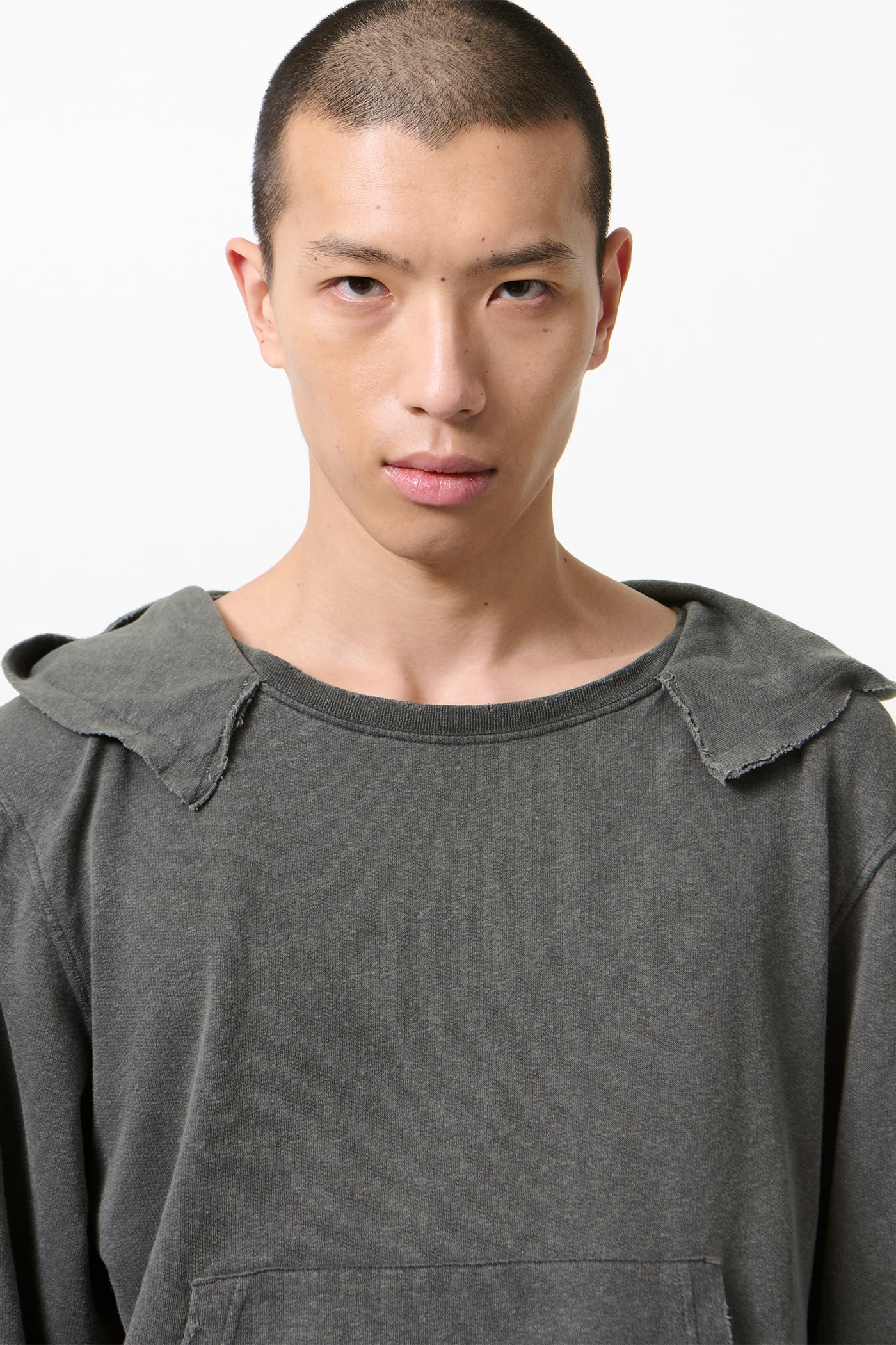 · Open hood with raw edges