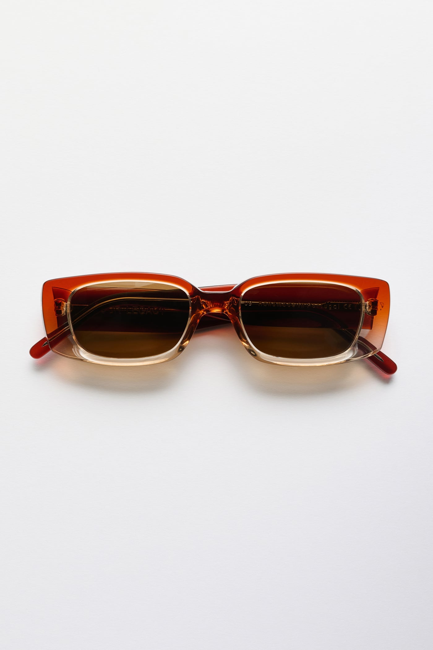 Our Samhain sunglasses in Garnet Milkshake. Handcrafted in Portugal from Italian Mazzuchelli acetate, these unisex sunglasses feature a gradient frame and light brown Carl Zeiss Vision lenses with filter category 1 protection and an anti-scratch coating.
