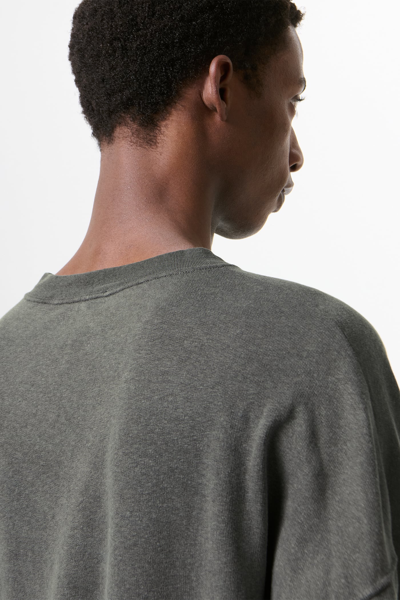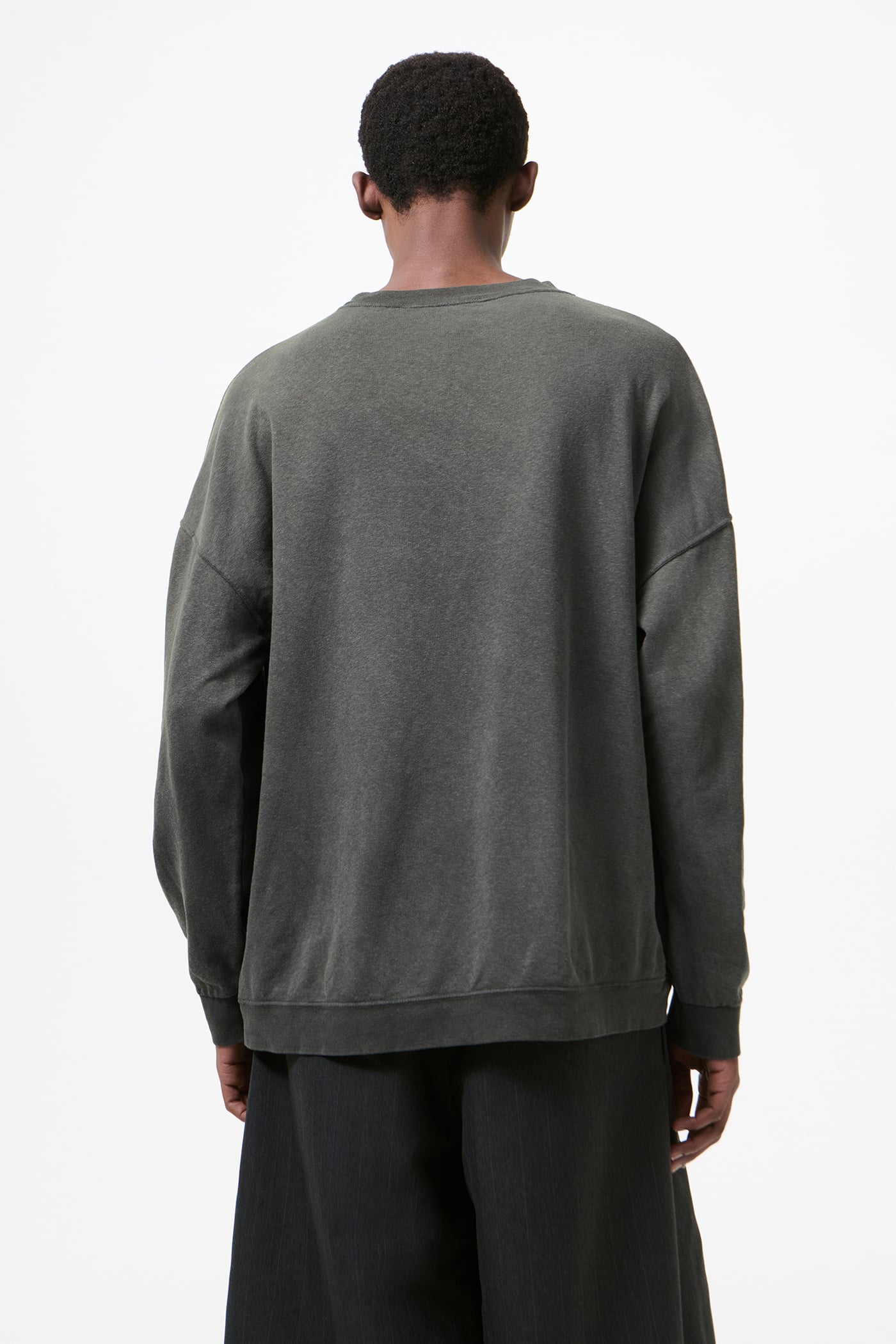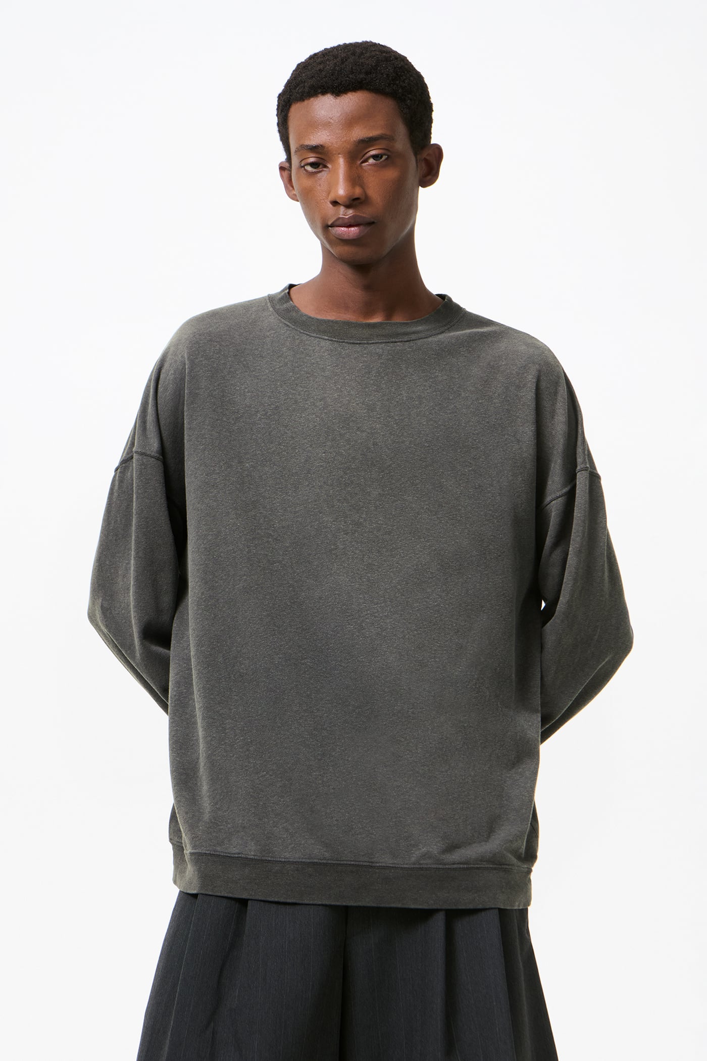Our Slack Sweatshirt in Washed Black Rogue Loopback. Produced in an Italian loopback fabric blended from cotton, linen and elastane, the Slack Sweatshirt has an oversized, elongated fit and features a slouchy neck, ribbed cuffs and hem, and overlocked shoulder seams.