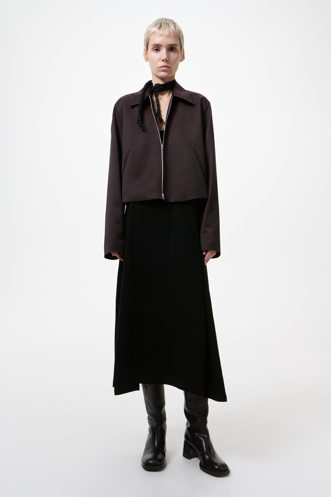 · Boxy and slightly cropped fit