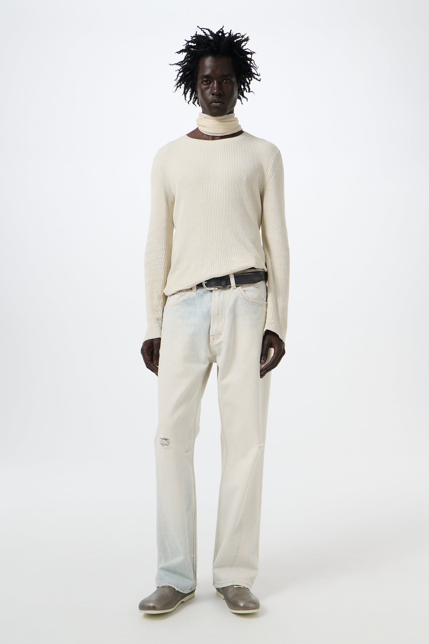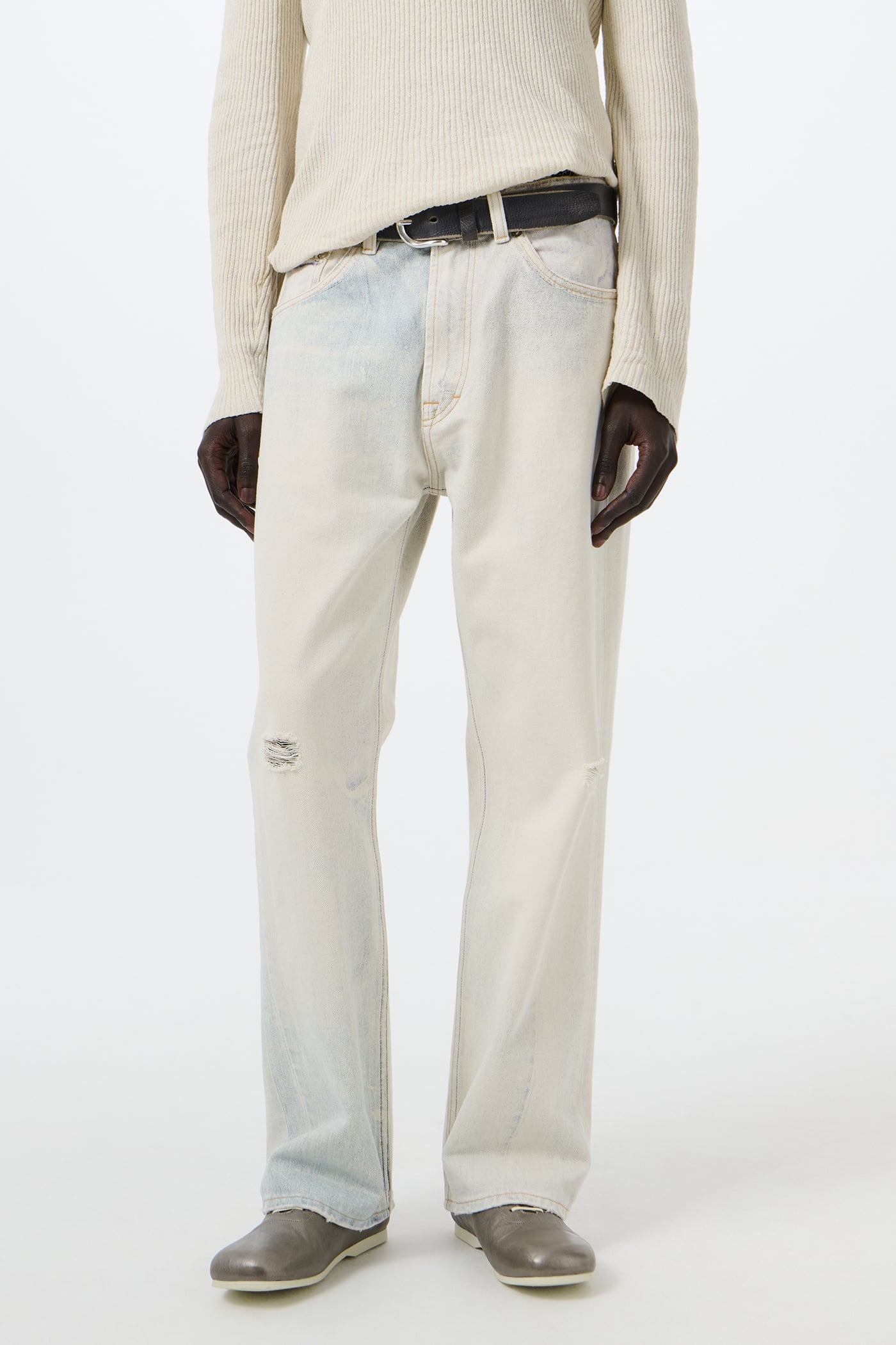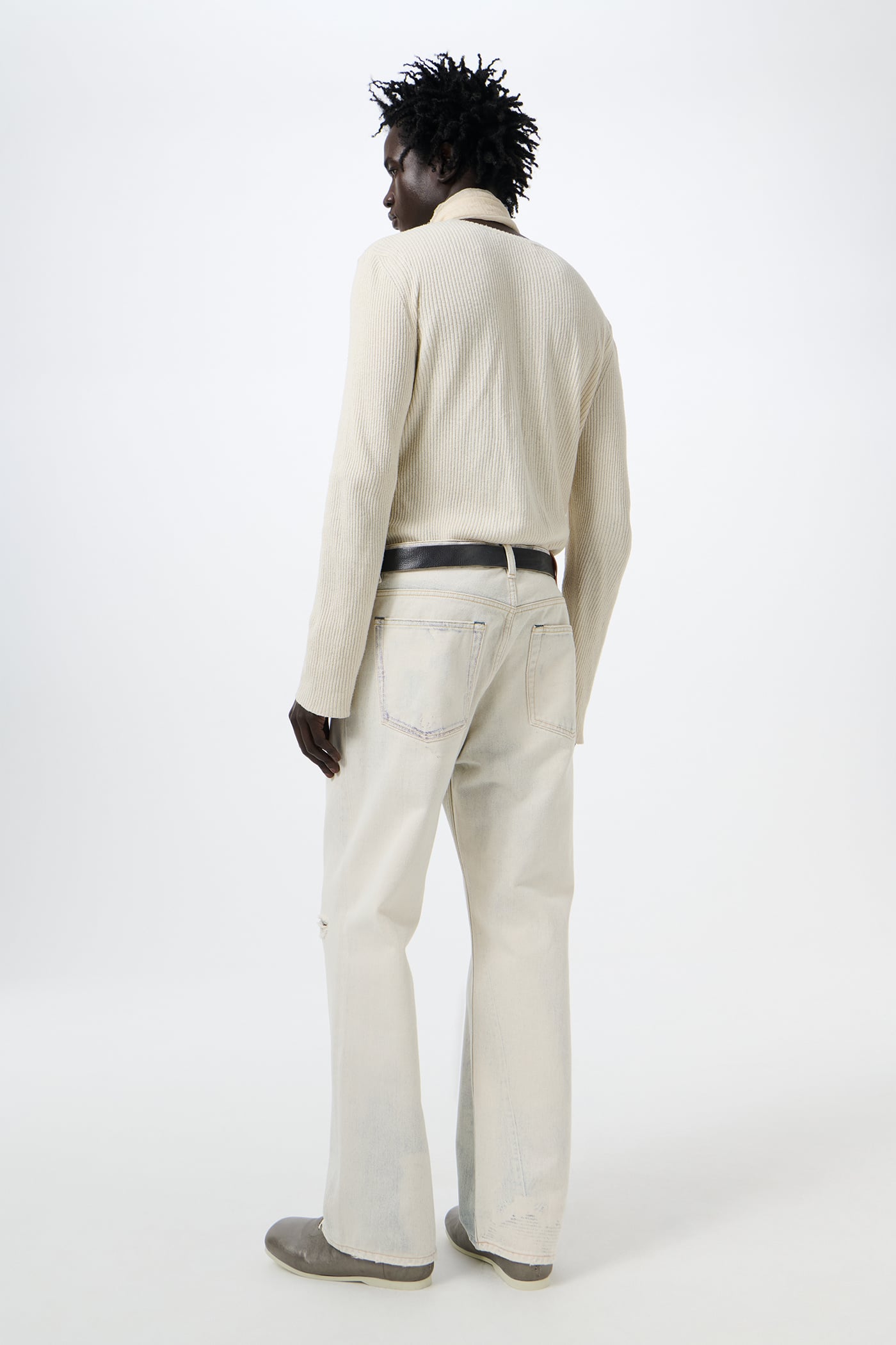 Our signature Third Cut Digital Denim Print is thoughtfully reworked to mirror the authentic wear of our creative director’s well‑worn pair. This fusion of digital craftsmanship with genuine usage creates realistic fading and distressing, creating a compelling illusion of wear.