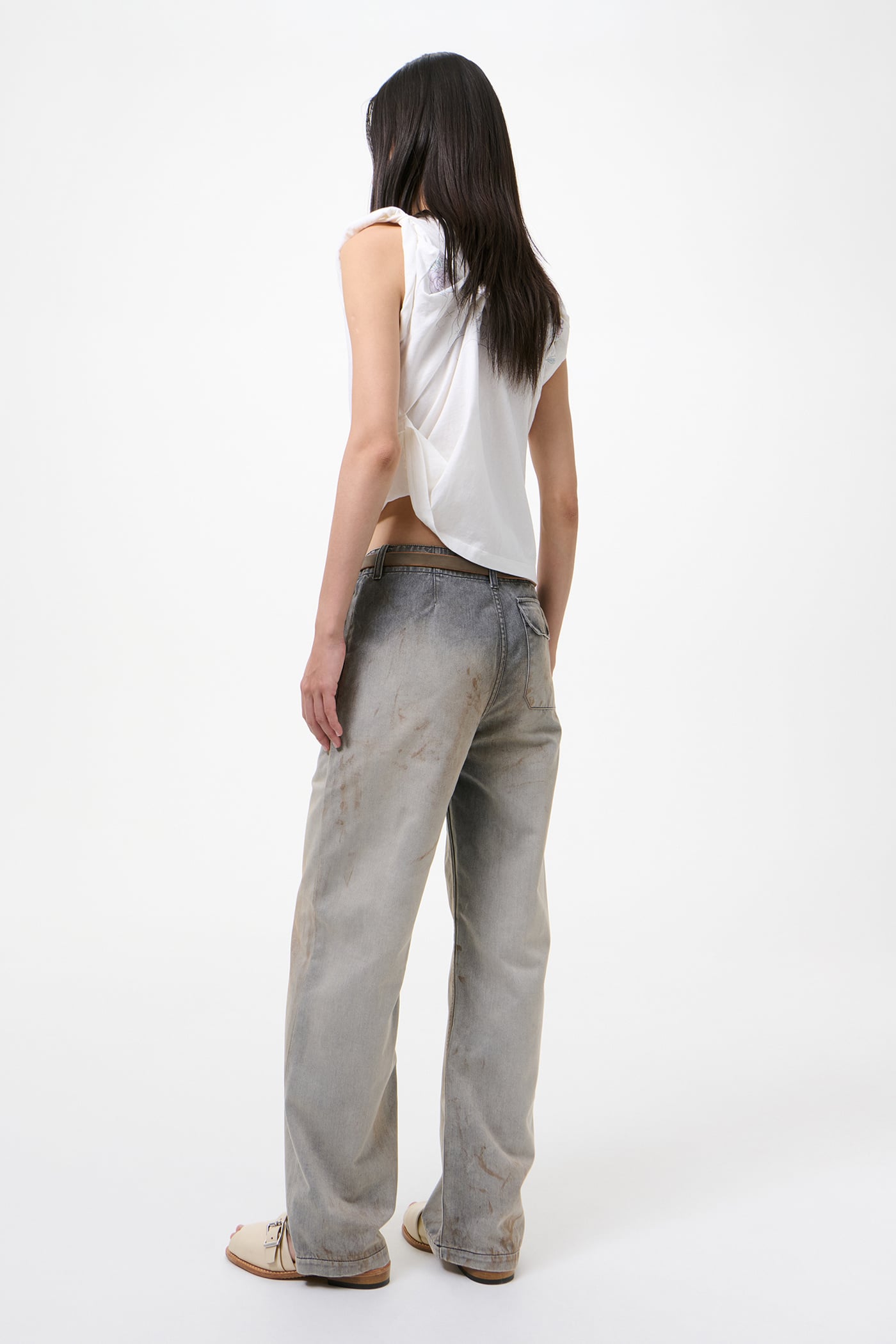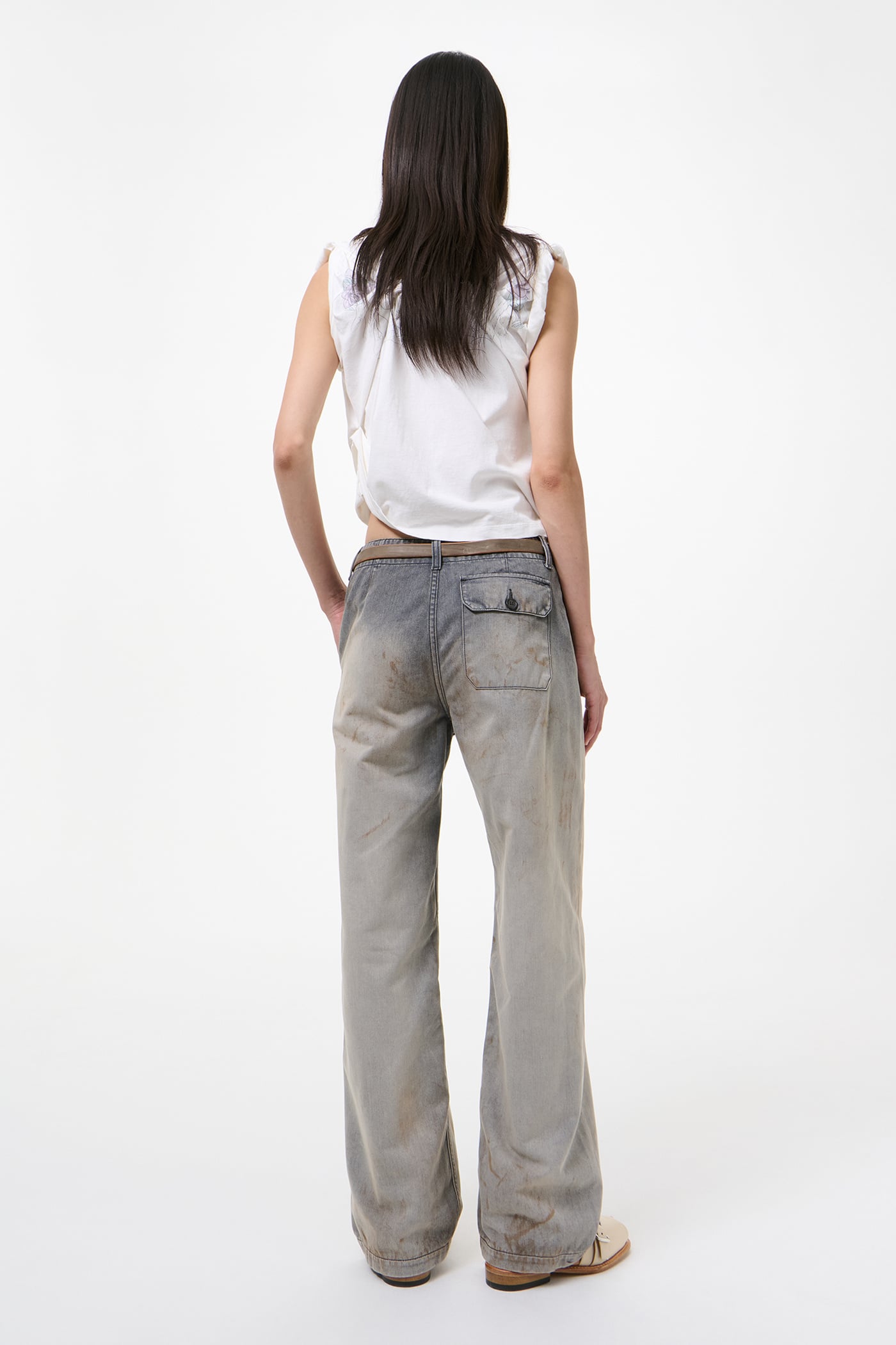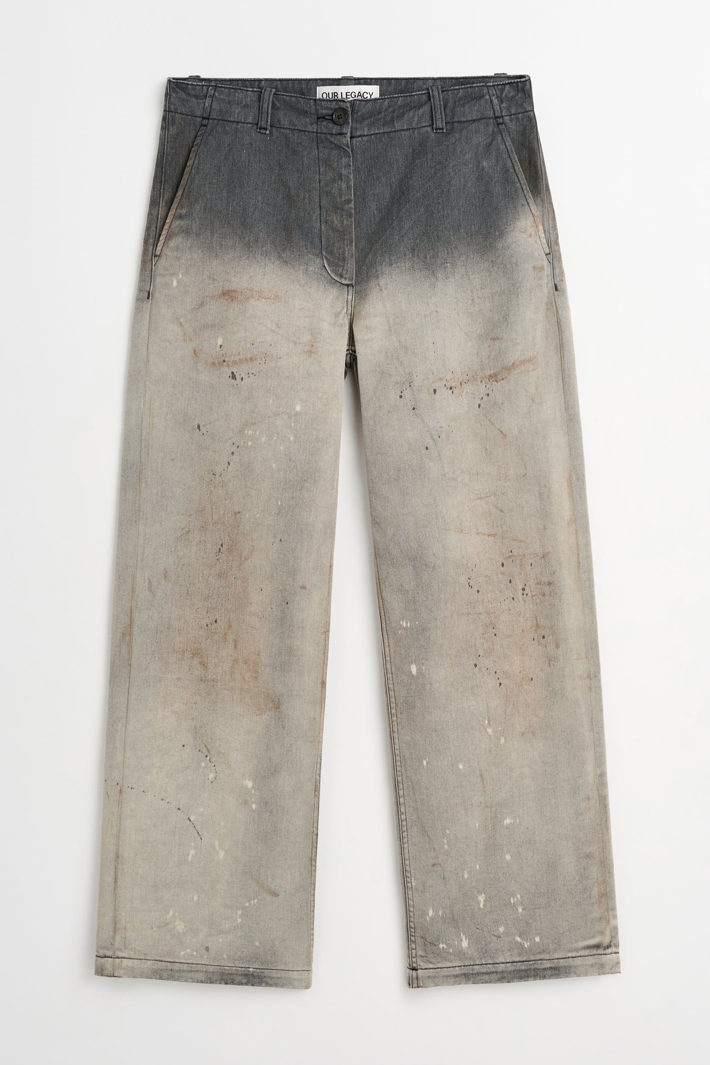 This garment is manufactured using carefully sourced material with a unique treatment process that will give each garment an individual shade and appearance. This technique could result in some color bleed onto lighter garments or surfaces. The garment shall be shaped by its wearer and naturally distress over time to finish the design process.