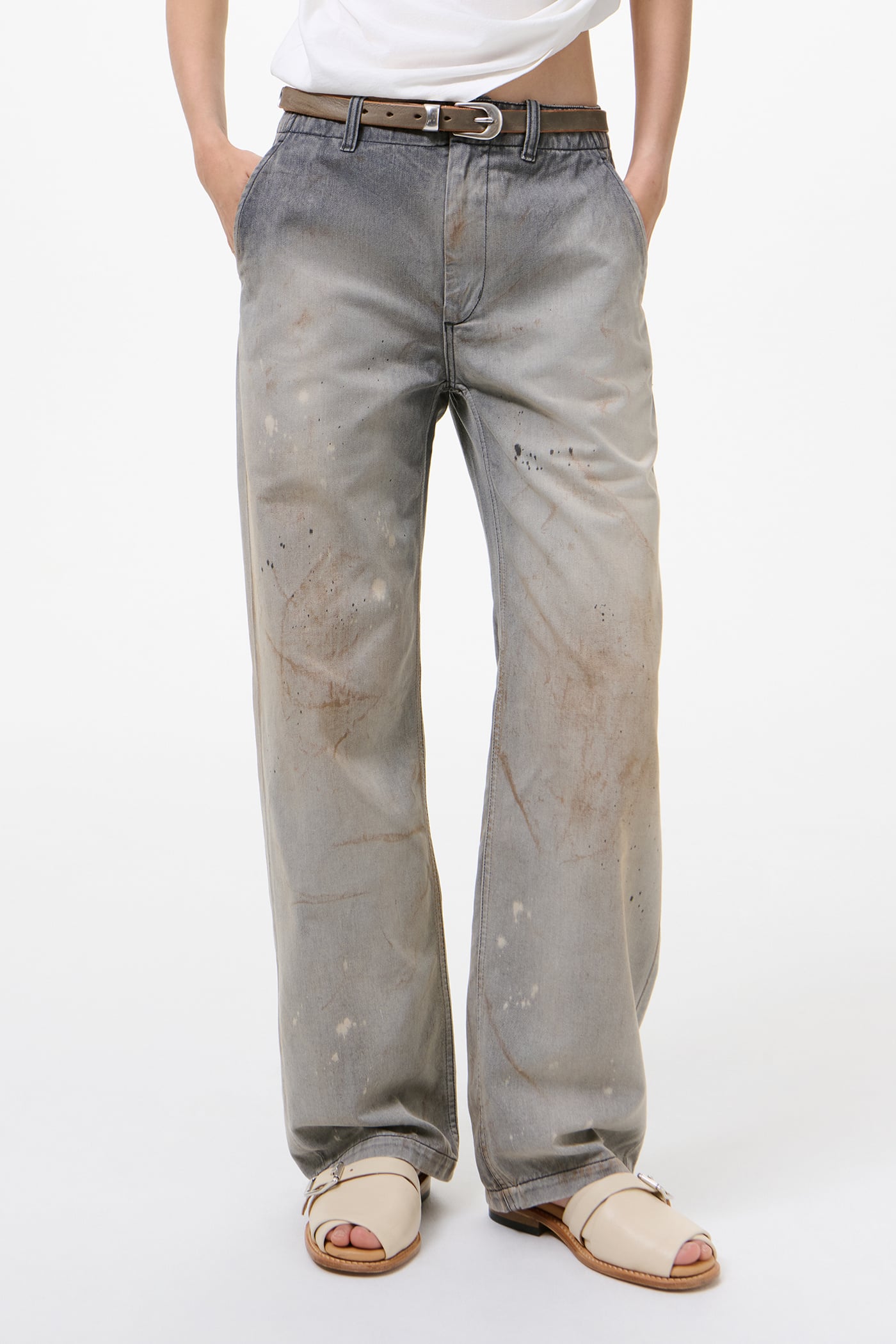 Our Tide Chino in Octo Wash. Produced in a Thai polyester and cotton blend fabric, the women's Tide Chino has a straight wide leg and features slanting front pockets, a button fly and a back patch pocket with flap. Piece-dyed and given a vintage wash for a soft, worn-in hand and nuanced tone.