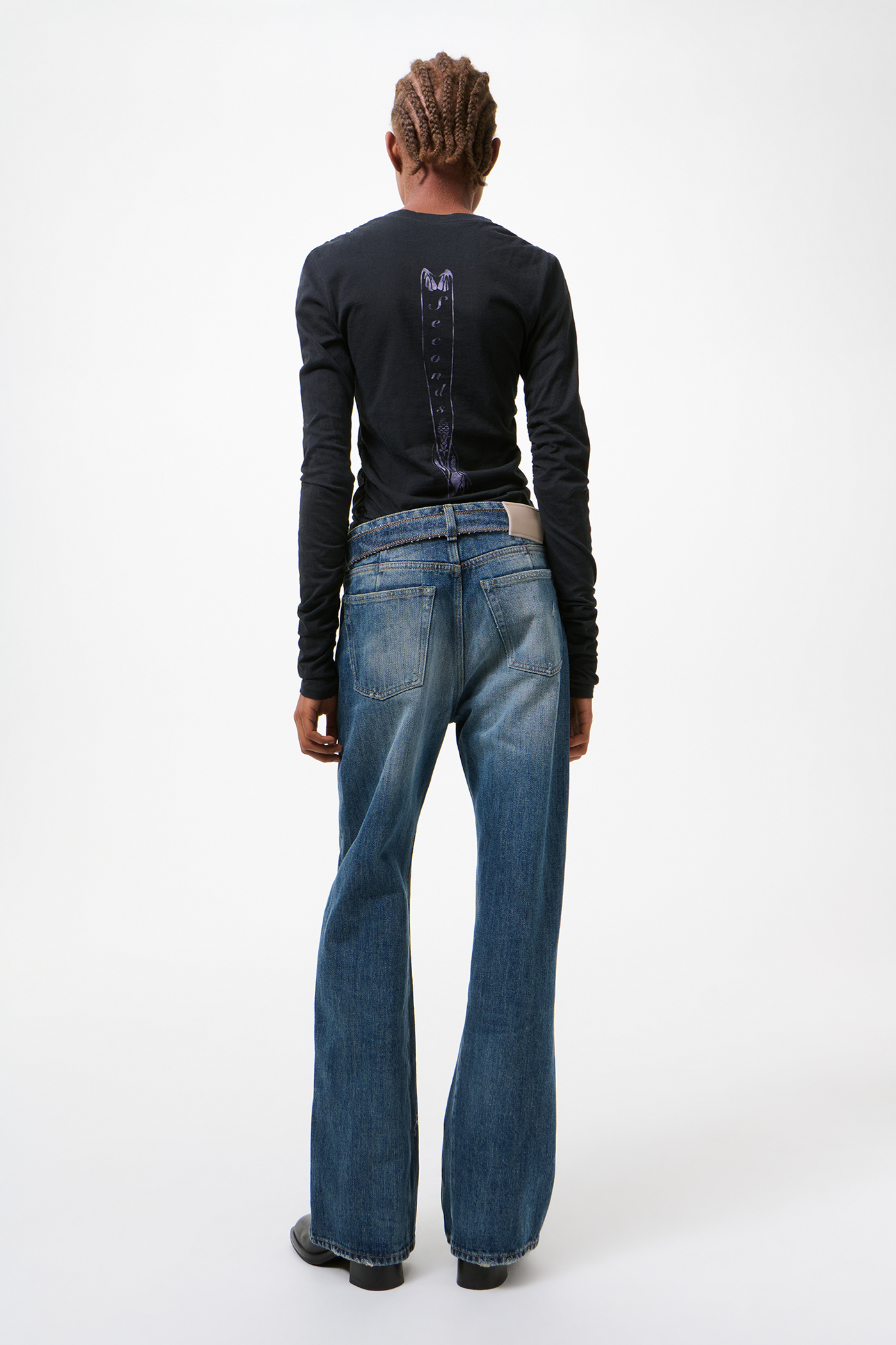 This garment is manufactured using carefully sourced material with a unique treatment process that will give each garment an individual shade and appearance. This technique could result in some color bleed onto lighter garments or surfaces. The garment shall be shaped by its wearer and naturally distress over time to finish the design process.