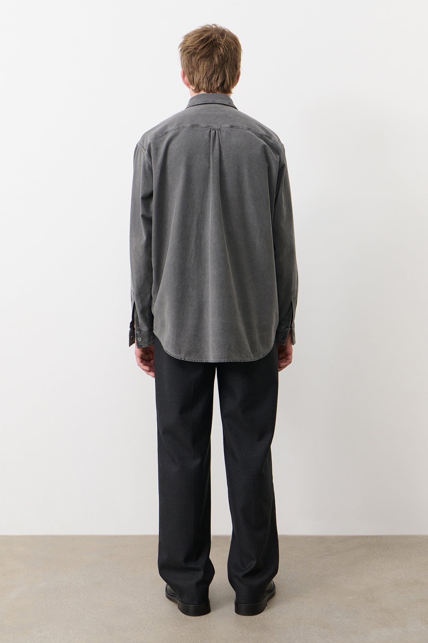 This garment is manufactured using carefully sourced material with a unique pigment treatment process that will give each garment an individual shade and appearance. This technique could result in some color bleed onto lighter garments or surfaces. The garment shall be shaped by its wearer and naturally distress over time to finish the design process.