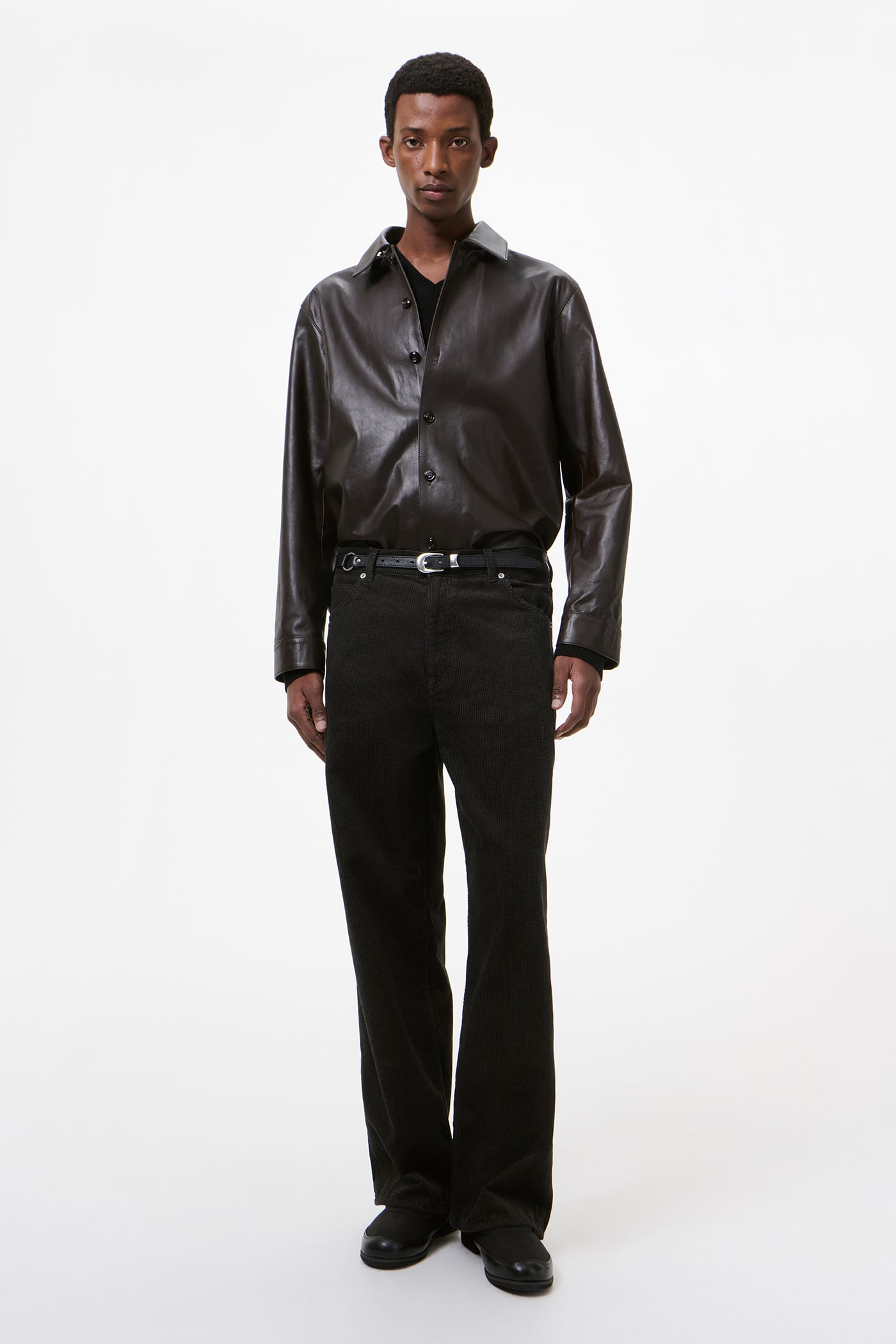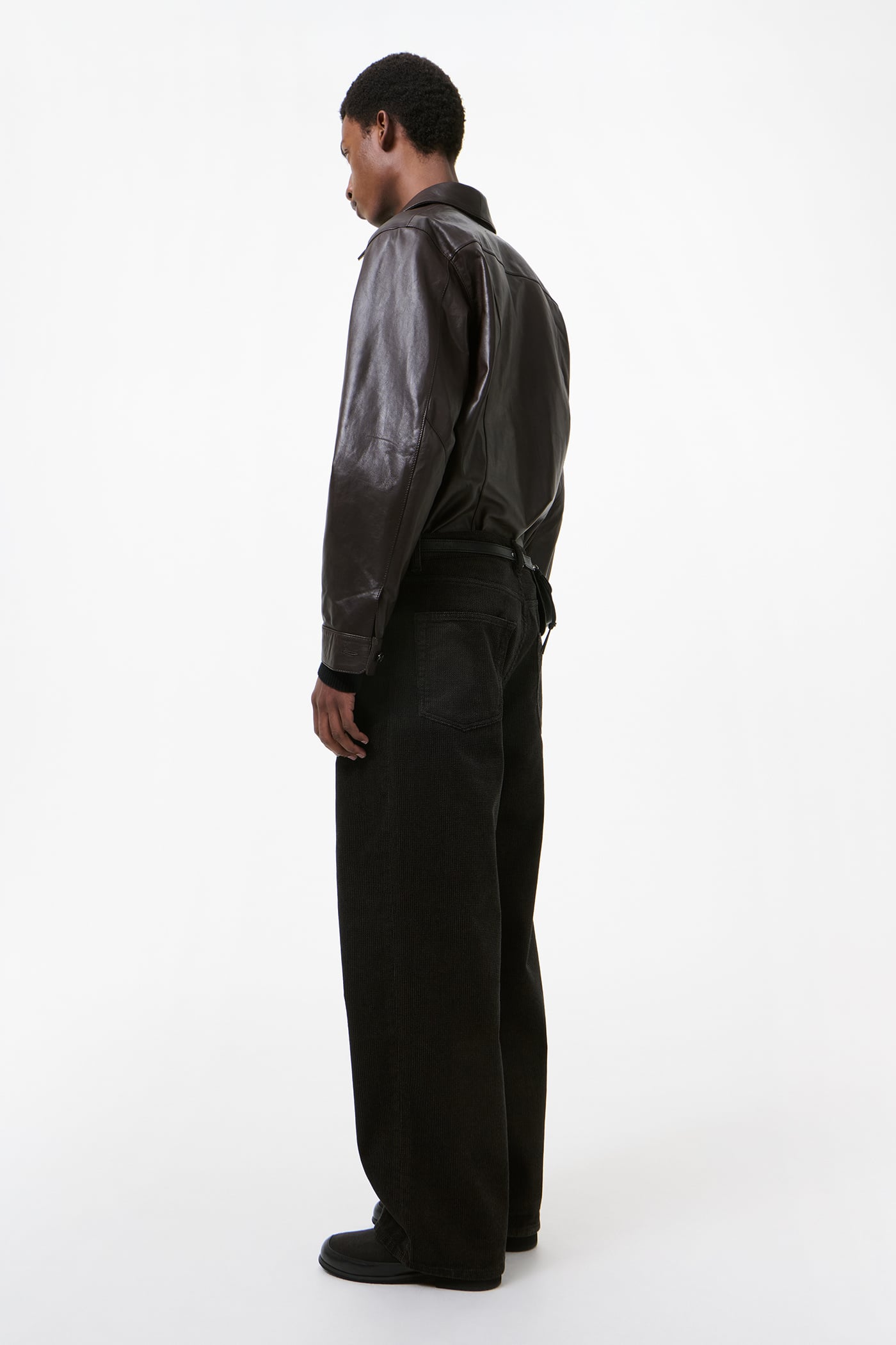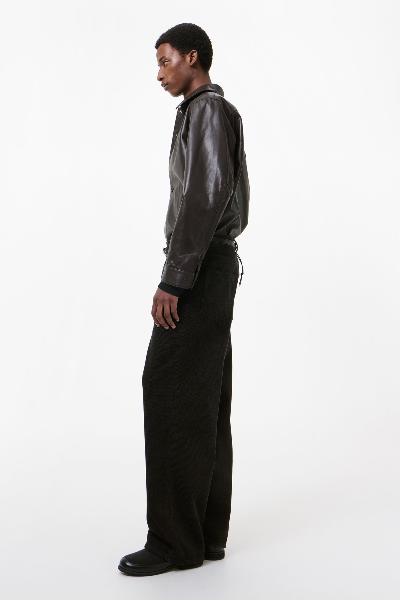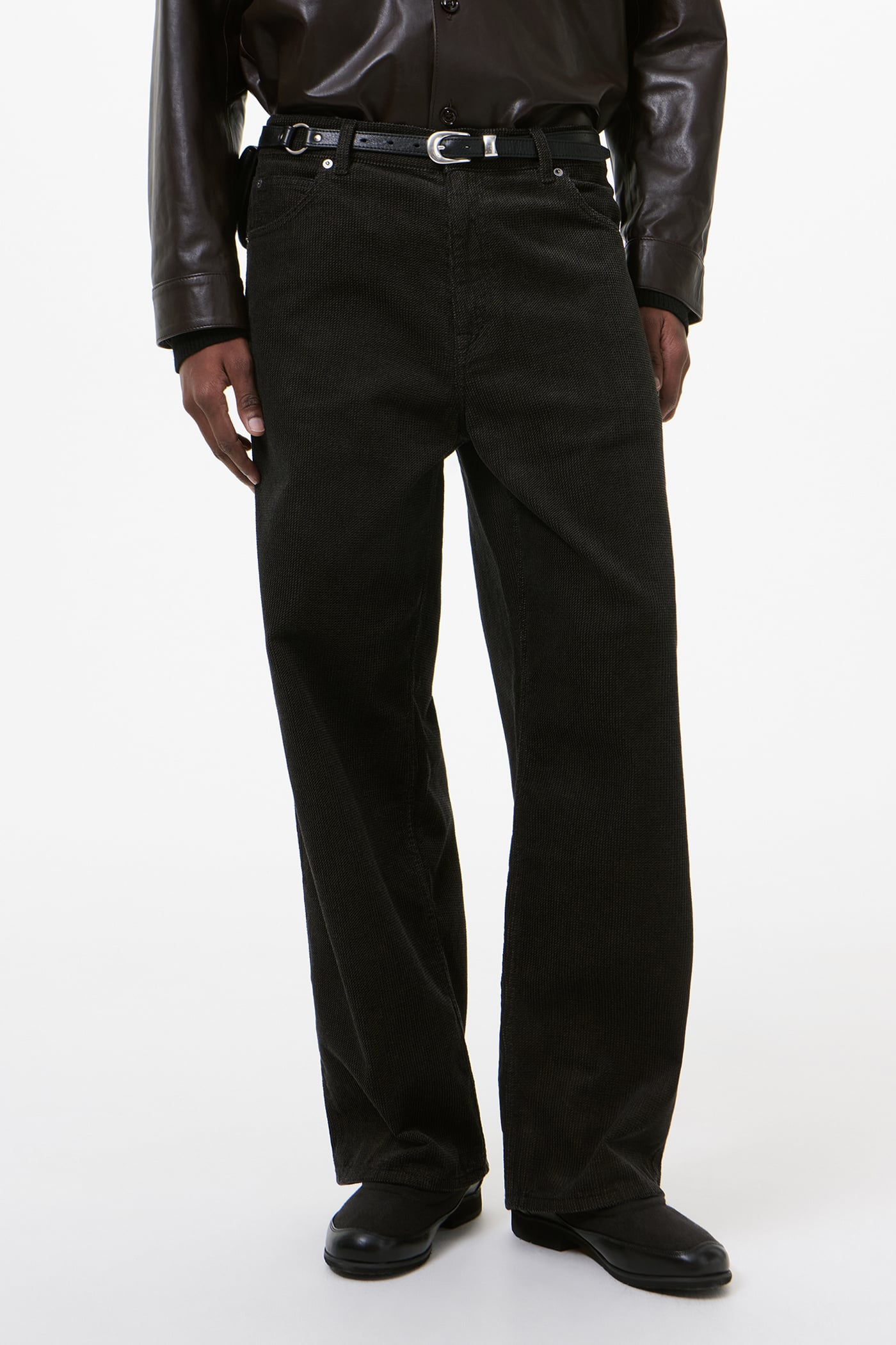 Our Vast Cut in Dark Brown Twill Cord. Produced in Chinese cotton twill corduroy fabric, the men's Vast Cut has a wide loose cut with high waist and features a YKK zip fly, steel rivets, five pockets, and an embossed OUR LEGACY patch.