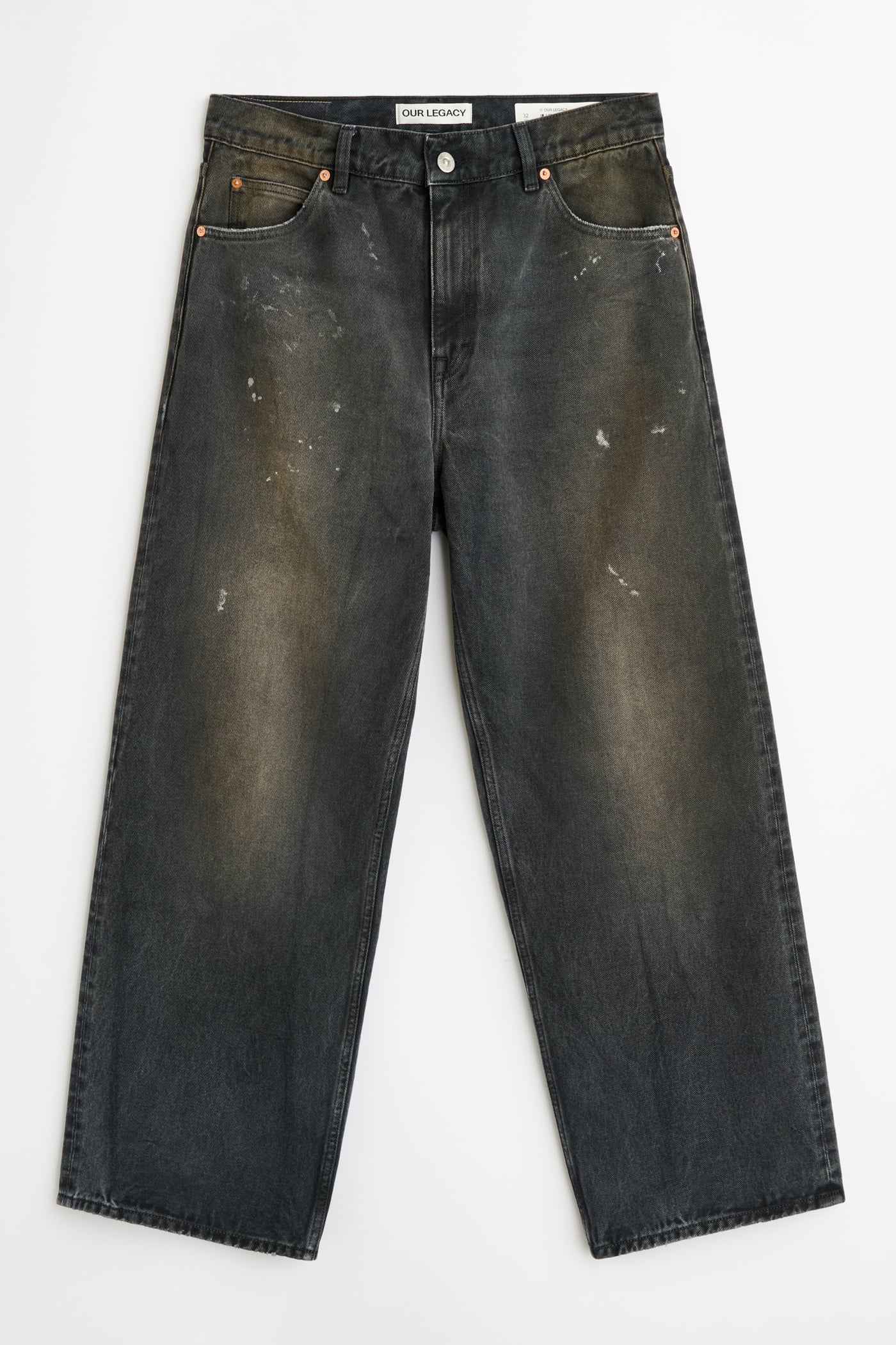Our Vast Cut in Nebula Wash. Produced in Italian cotton denim that has been pigment overdyed to echo a vintage piece, the denim reveals rich, layered tones with a subtle lived-in character. The Vast Cut has a wide, loose silhouette with a high waist and features five pockets, steel rivets, an embossed OUR LEGACY patch and a YKK zip fly.