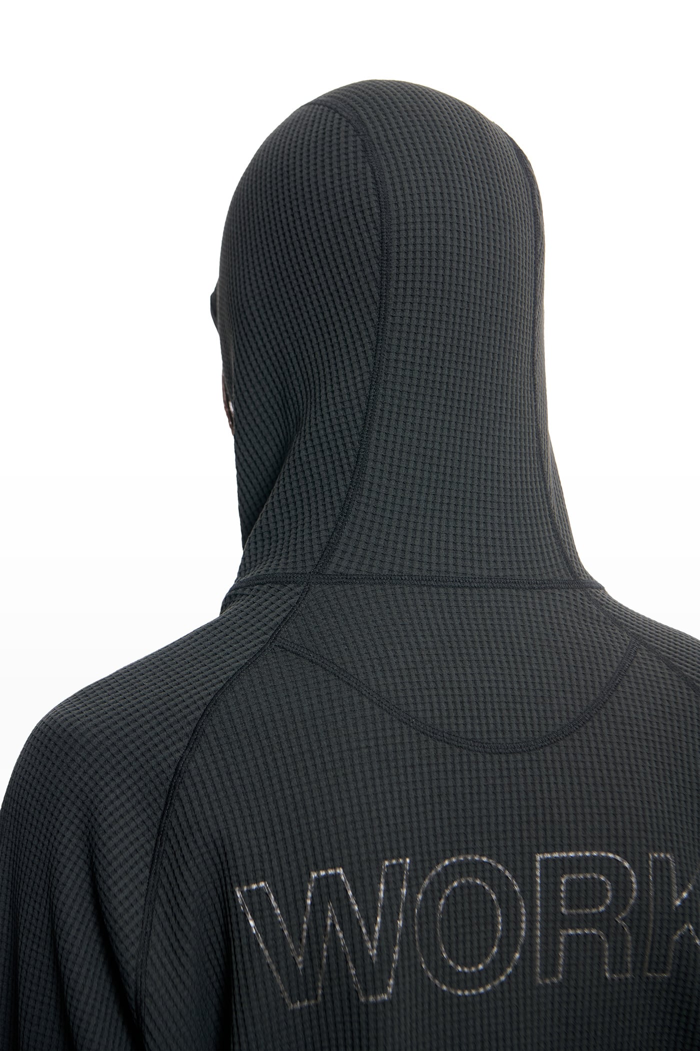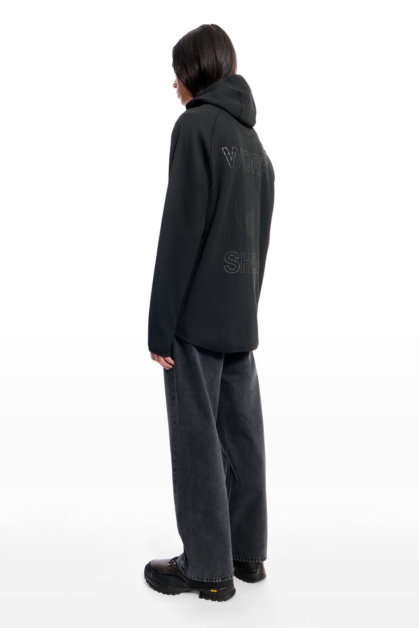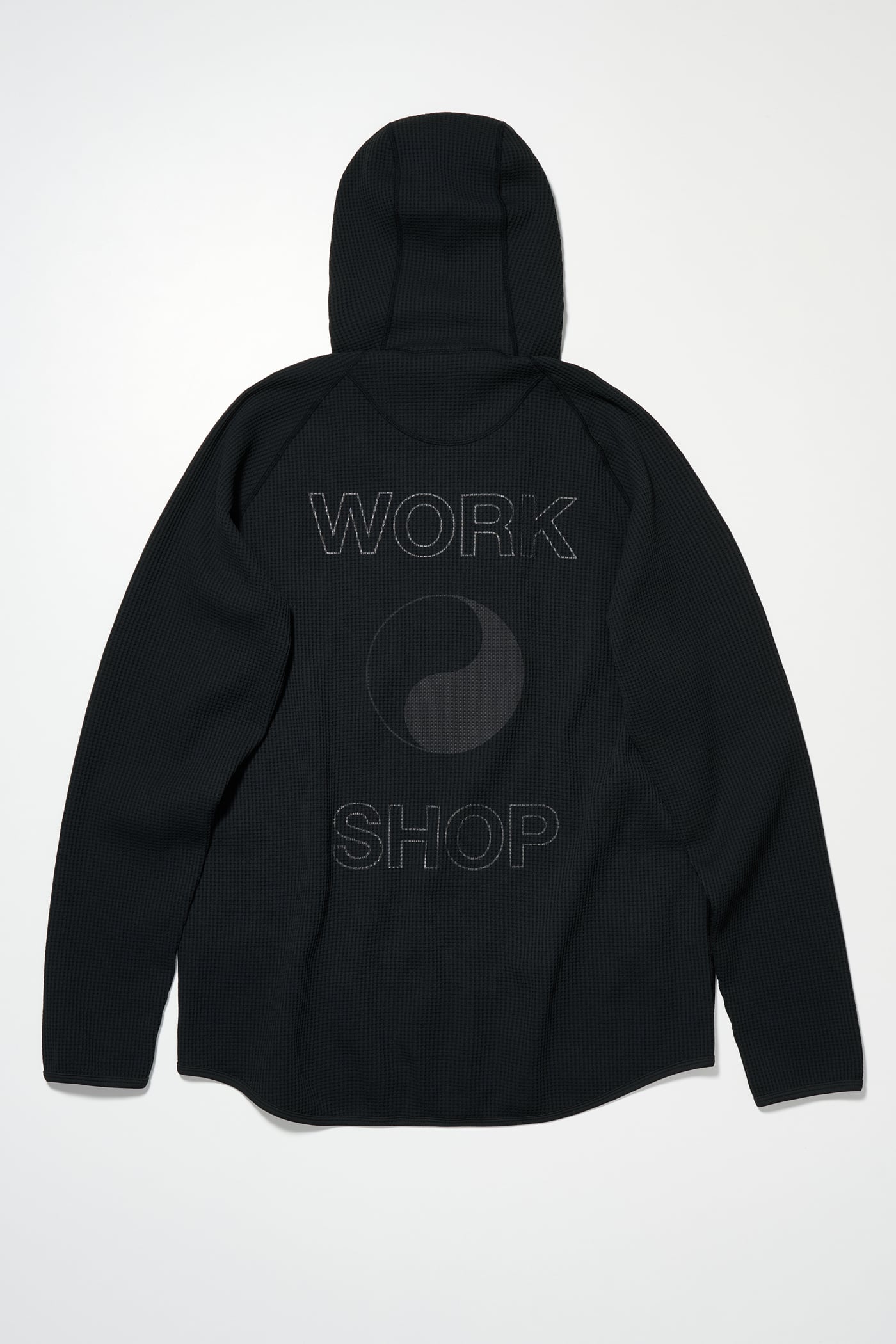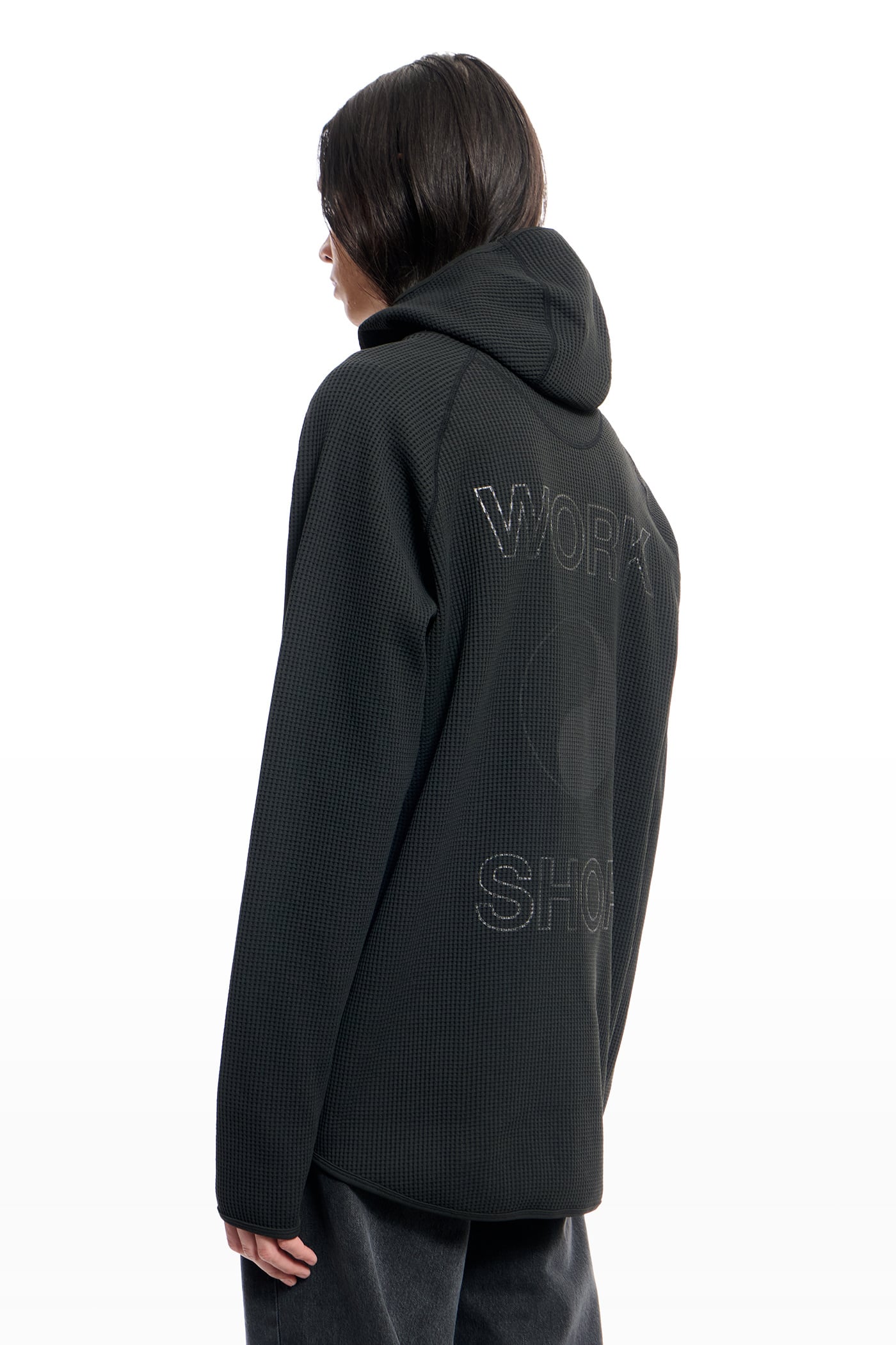 A thermal hoodie that offers a voluminous yet lightweight feel. The front and back graphics use reflective ink (*1), creating a distinctive appearance.