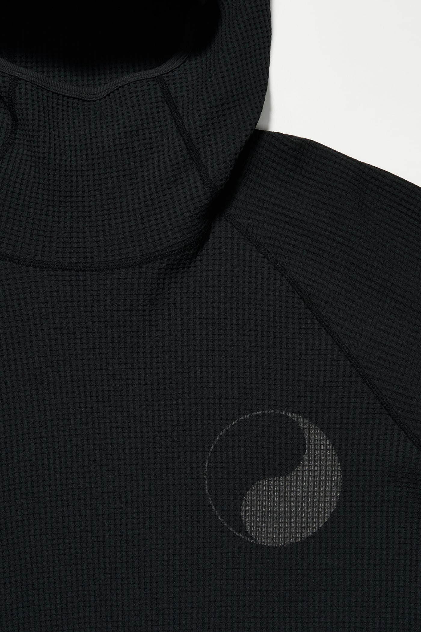 The compact hood shape and high front placket enhance UV protection when worn up and provide warmth in cold weather. To prevent odors, the fabric is treated with Polygiene StayFresh®. Recycled yarn is partially used to reduce environmental impact.
