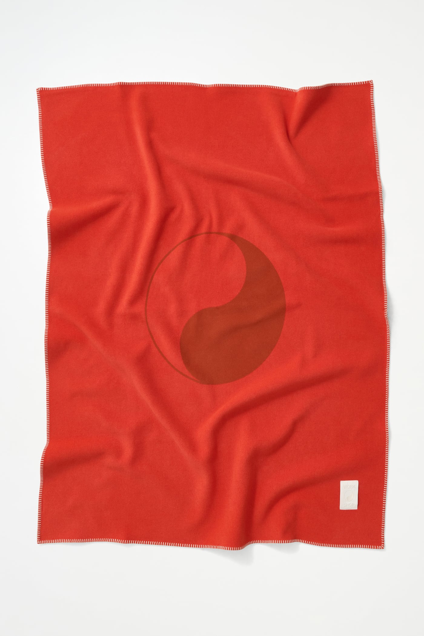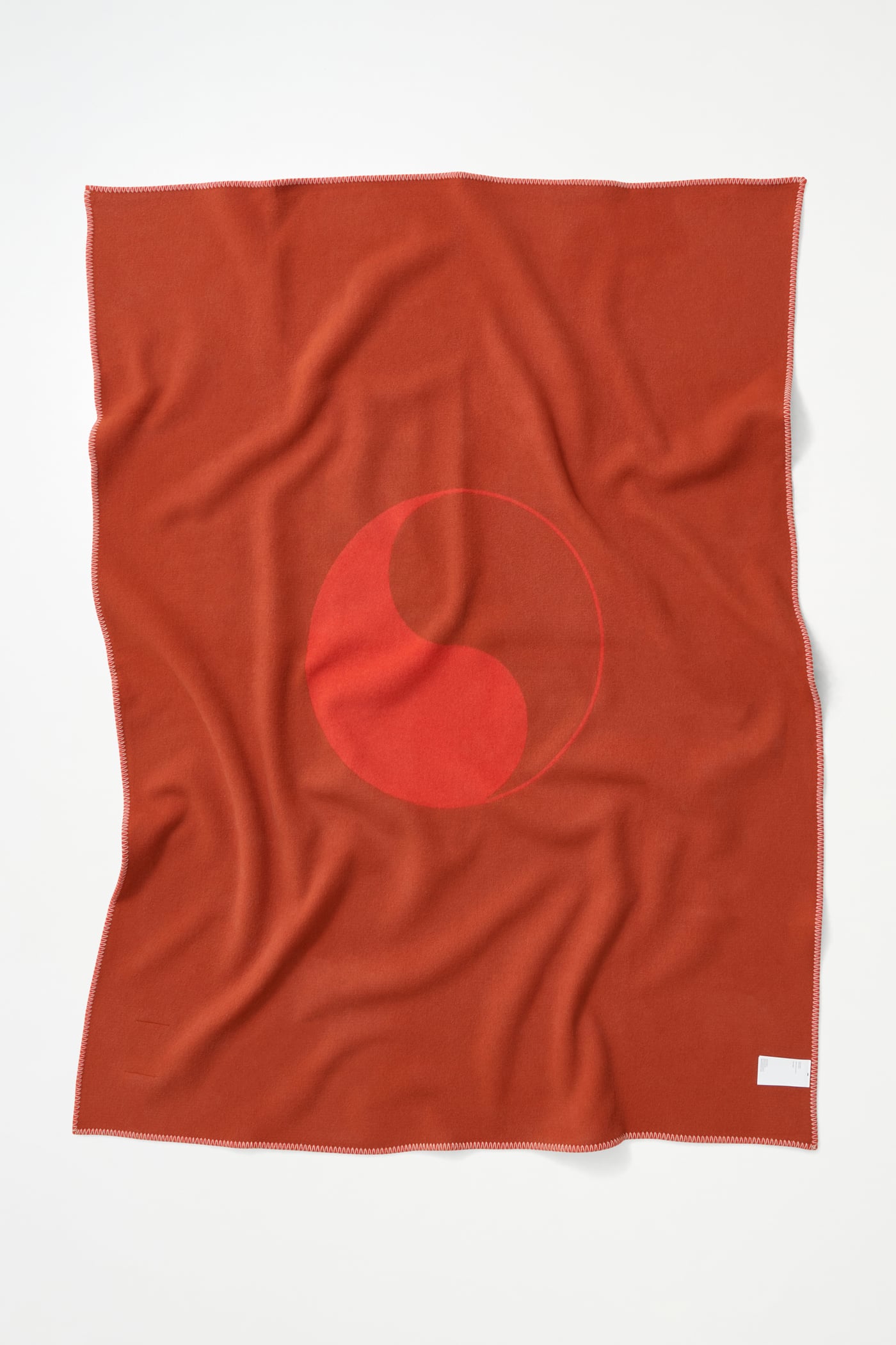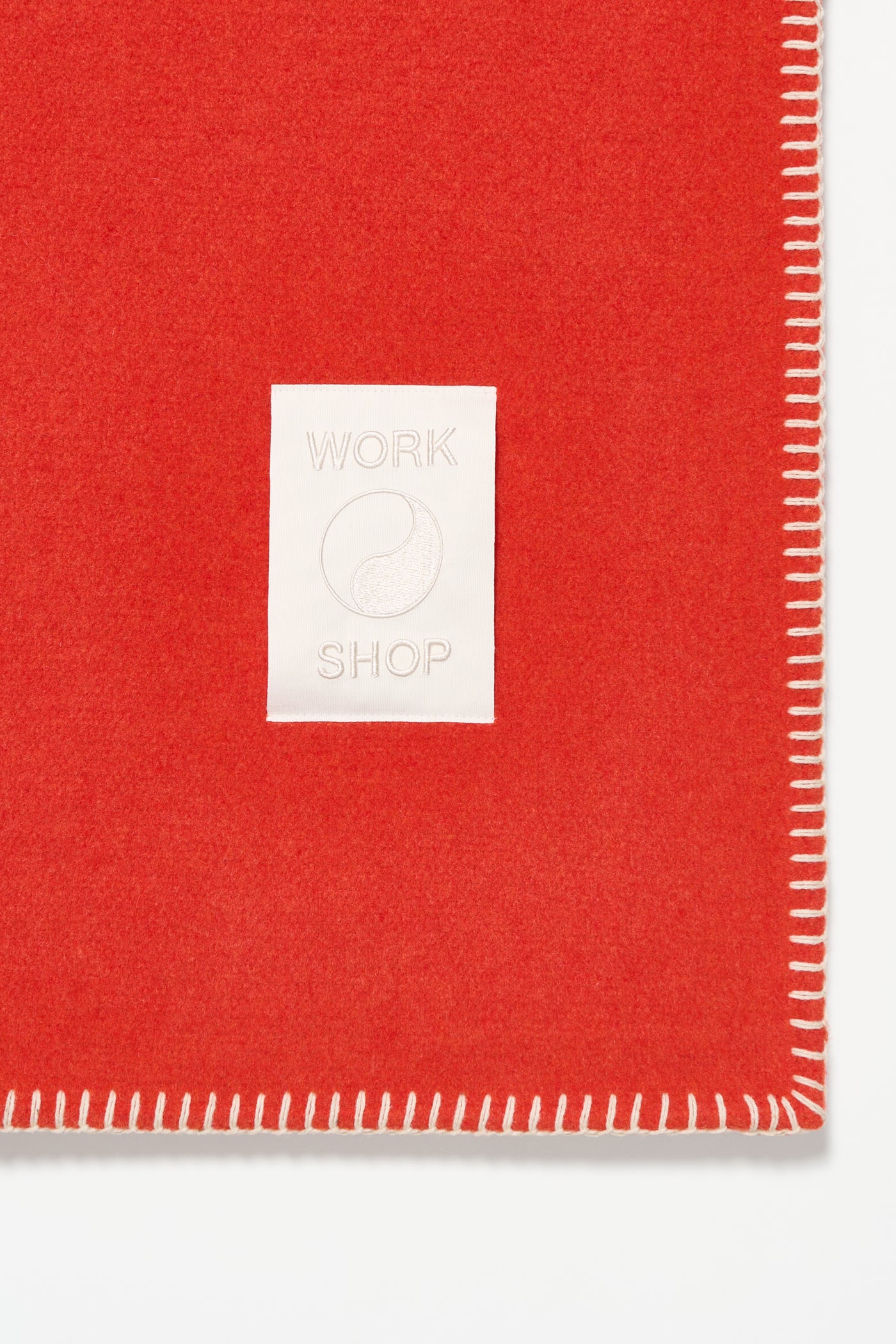 Our Work Shop Blanket in Orange. Produced in a soft thick Italian natural wool, the Blanket features carpet stitched hems, a woven Our Legacy Yin Yang logo and a Work Shop patch.