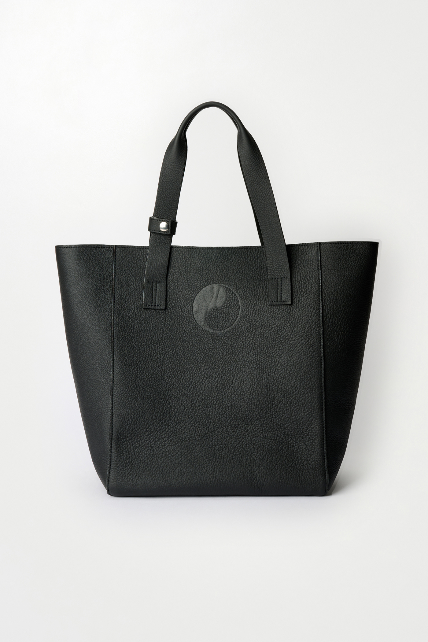 Our Work Tote in Black. Produced in Dutch bovine leather with a grain finish, the Work Tote features a large central compartment, an inner pocket with double snap closure, patched and stitched leather carry handles, a detachable shoulder strap, and is fully leather lined.
